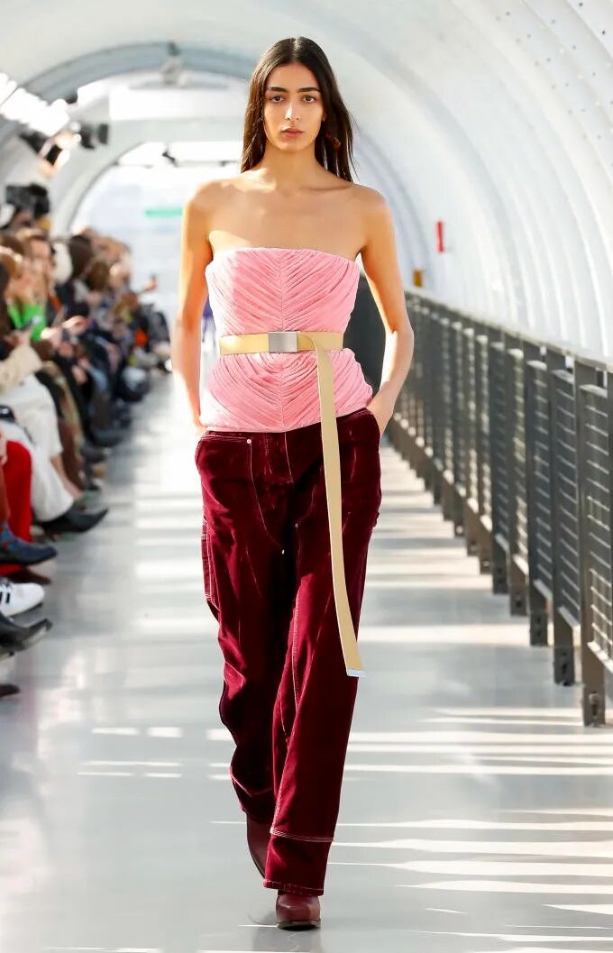 以极简主义风格打造盛夏品类,通过在一两个部位使用聚褶设计,并用简单缝线固定来呼应该趋势,还可以添加可拆卸的粗重金属硬件,令穿着者可以灵活变换造型。
