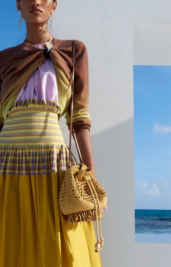 时尚是一个轮回,这些时尚元素又流行回来了。聚褶、镂空、流苏、拼接等等丰富细节,在性感奢华与实用百搭之间找到了平衡。各种亮片替代材质涌现,以全新工艺为日间和晚间造型打造闪亮和夸张的效果。不完美串珠是一种相对环保的装饰元素,恰好能够与日益盛行的手工艺趋势相契合。
