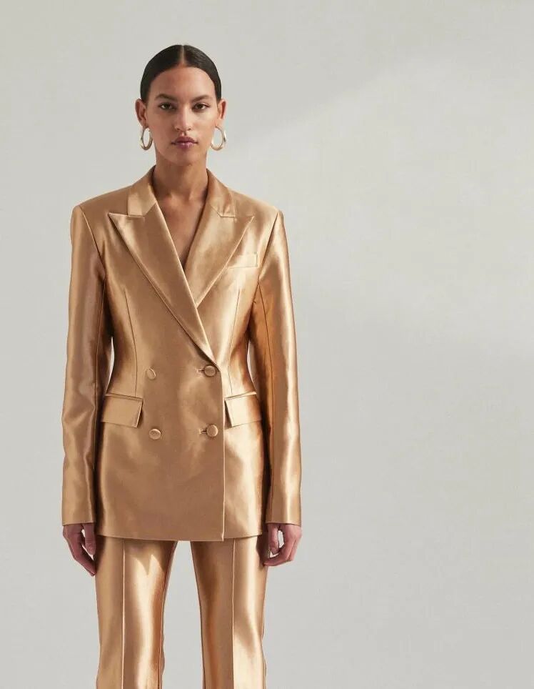 无论是低调微光还是视觉冲击较强的高光,对光泽表面的应用显示出高光效果对2023春夏绸缎造型的影响。Victoria Beckham将太空风银质蓝色长裤与基本款白色T恤相搭配,足以体现高光泽面料也可以打造日常造型。高光泽涂层可增强外套单品的防水性能,也可以为经典的格纹造型增添现代质感。将#超亮色和柔和金属色运用于绸缎,适用于连衣裙和半裙品类,可打造出时尚的吊带裙和不规则剪裁中长半裙。新式学院风品牌名设计是打造夸张图案的新颖元素。用贴布、撞色缝线和提花等设计呈现大写字母文字。