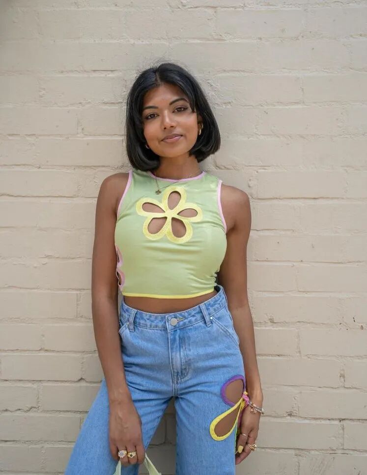 大胆应用黑色、白色或基础亮色等单一色彩来打造个性文字,尝试新颖或个性的文字布局。数字和字母是体现经典学院风的传统元素,但也不妨趁机更新品牌名设计,或使用城市名和与品牌有关的鲜为人知的地区名来增添地域特点。通过与全球的各种社群合作来重塑文字字体,更新经典的常春藤造型,同时展现如何重塑复古运动风格的学院风品牌名,以此迎合新一代消费者的喜好。人们对千禧初期各种事物都充满了怀旧情怀,带动了那个年代的流行图案再次兴起。Blumarine等品牌用印花、贴布和手工钩编的形式来呈现蝴蝶图案,与y2k千禧风主题相呼应,同时加入一丝新颖的表面意趣。除了Butterflies蝴蝶图案外,心形、星星和雏菊等图案也都值得关注,助力该趋势不断发展。微型图案或将其做为纽扣装饰能够增强实穿性。可在音乐季优先考虑此类引人注目的图案,并应用于儿童T恤、连体衣和丹宁短裤等。备受奢侈市场和平价市场青睐的拼接元素令单品设计充满个性。该细节体现纯正的休闲格调,设计师们开始采用荧光色来打造手工艺钩编,同时开发模块化设计梭织上衣,比如双色调衬衫。将同色系或撞色的升级再造面料相结合,打造拼接或贴花效果,可以营造出不同凡响的丹宁款式。可调节设计、聚褶、内衣风元素都是2022/23秋冬T台上的关键辅料与细节趋势,它们在性感奢华与实用百搭之间找到了平衡把设计焦点转向身体背部,露背设计以更加低调、日常的设计展现颠覆性感趋势。迎合半遮半掩的设计趋势,搭配简单细节来增添低调个性,比如在针织背心添加纽结系,或在夏季连衣裙上应用对比印花蝴蝶结。做为2022/23秋冬买手指南报告中的关键细节,新颖条带可以用于打造装饰效果,在首饰品类的影响下,精致的金属色装饰能够为经典的夏日小黑裙增添质感。背部挖空对各种身材都能起到很好的修饰作用,可尝试将横向开口的设计与可翻折一字露肩领口相结合。