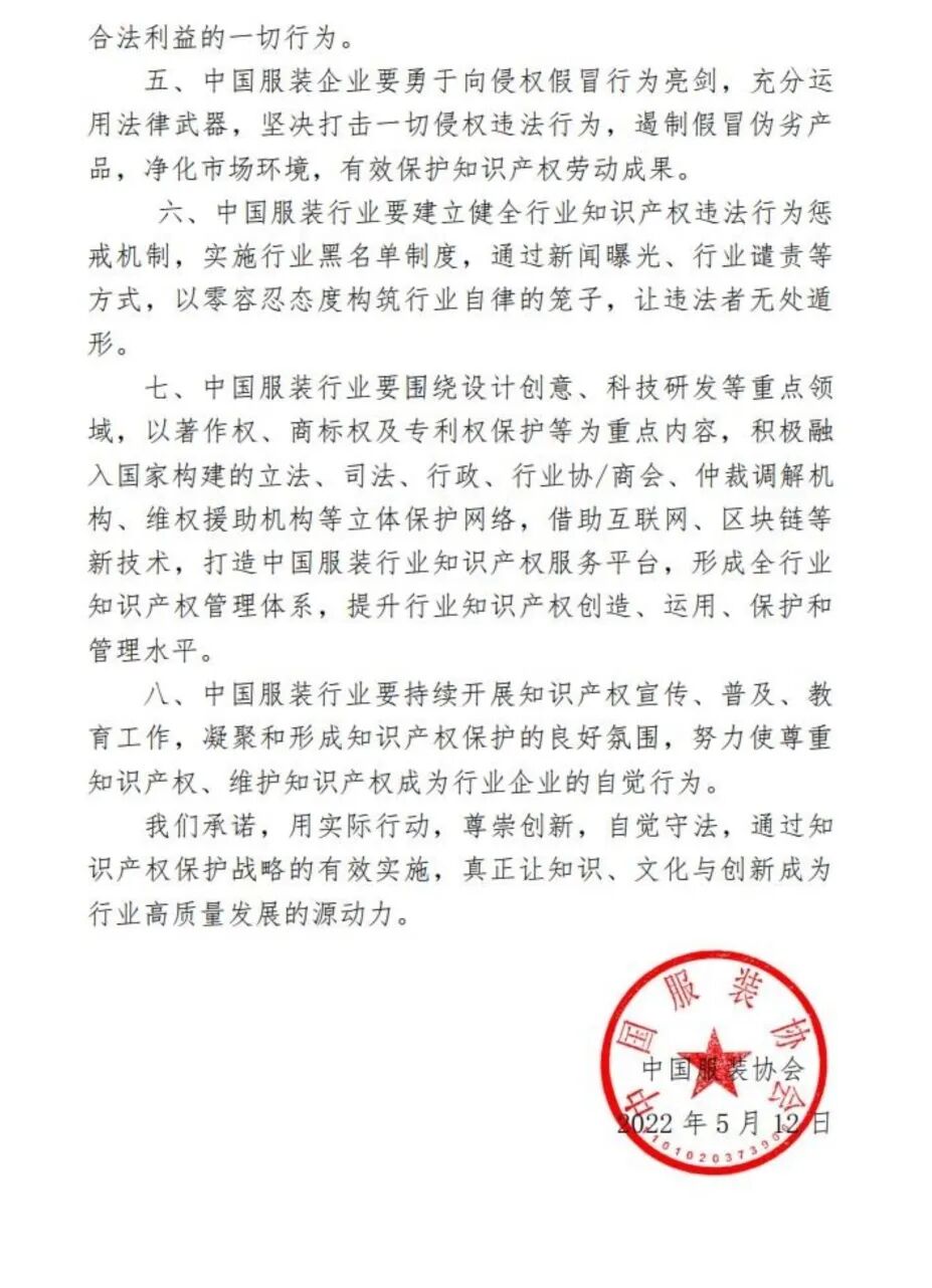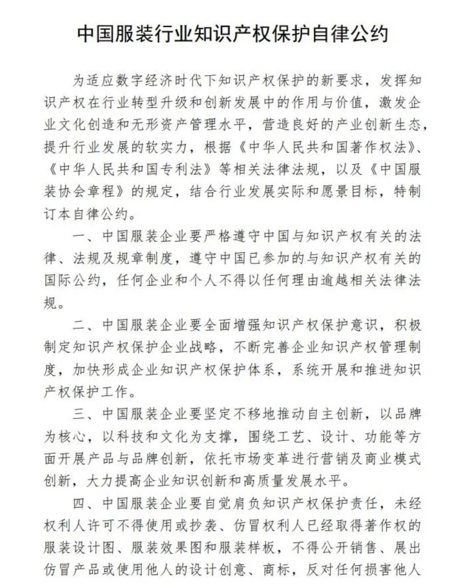 权威发布 | 中国服装协会携28家品牌企业发布《中国服装行业知识产权保护自律公约》