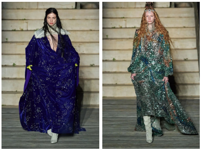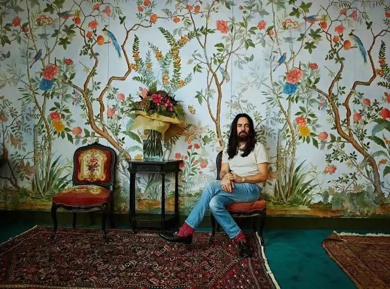 在意大利阿普利亚(Apulia)无边无垠的平原上,坐落着这样一座城堡,由罗马皇帝腓特烈二世修建于13世纪中期。腓特烈的私生女维奥兰特(Violante)曾在此举行婚礼,城堡也用作过监狱,1966年被联合国教科文组织录入世界遗产。城堡曾在17世纪被遗弃,它的一些大理石和雕刻被抢走,牧羊人和土匪也曾经以此为家,1876年城堡为国家所有。上月,Gucci在蒙特城堡(Castel Del Monte)举办了2023早春时装秀,这次大秀的主题为“Gucci Cosmogonie”意为探索宇宙起源,诠释宇宙的神秘力量。亮片、羽毛、水钻、钉珠、丝线……设计师和绣匠们通过一针一线的精湛手工艺,呈现古老的星座图像,赋予了Gucci更具神秘色彩的华美。Alessandro Michele向我们展示了他对宇宙神秘学的迷恋,一切都如星空般璀璨闪耀。Gucci的发布秀选在意大利当地时间20:00整,大秀开始,月光照耀在蒙特城堡上,灯光师再将繁复古老的星盘打耀在城堡外壁上,呈现出绝美的星河灿烂。Alessandro Michele说:“我认为这座城堡不应该保持沉默,而必须像它建成时那样生活和举办庆典。”本季Gucci在结构、面料、手工艺的选择上更为惊艳丰富,有着都市摩登的范儿,又复古令人仿佛穿越到了中世纪的浪漫时期。但比起华服,更有意思的是此次秀场的选址、有着“意大利最美城堡”之称的蒙特城堡。蒙特城堡的平面图,呈现完全对称的八边形,正对任何一面看过去都是这样的形状,简单大气,无疑是古希腊罗马风格、东方伊斯兰风格和北欧西多会哥特式建筑风格的完美结合。蒙特城堡不仅是一座八边形的建筑,有8座塔,每层有8个房间等等,在一些神秘理论中,8代表水平和垂直方向上的无限,或是宇宙力量的基础。不得不说Alessandro的眼光真的毒辣,蒙特城堡的形象还被刻在意大利的一分钱欧元的背面。Alessandro也用他的涵养智慧,向我们传达了Gucci的文艺复兴美学,Gucci的早春系列都会选在一些很特别的历史文化遗址发布。自从Alessandro在2015年担任Gucci创意总监以来,就让开云集团赚得盆满钵满。他令大众眼里那个老气横秋的Gucci,摇身一变成为当代新贵们最喜爱的品牌之一。复古与潮流、文艺复兴的独特美学总是能冲击当下年轻人的口味。Alessandro Michele出生在1972年意大利罗马的冬季。母亲从事电影行业,父亲热爱雕塑艺术,生活在罗马自小就让他受到了良好的艺术熏陶。后来就读于全球顶尖学府罗马服装学院,毕业后第一份就是在Fendi担任配饰设计师。他曾经做过皮具部门的创作总监,2011年5月又被擢升为当时的创作总监Frida Giannini的副手。他的才华很快就被发现了,这位来自意大利罗马的男人,凭借着他对复古美学的解读以及打破传统的思维方式,俘获了Gucci内部一众人士。Alessandro与生俱来的才华以及对公司和整个设计团队深入的了解,都能够让他迅速无缝的实施他的全新创意方向。随之而来的大家也都肉眼所见,他俘获的不仅仅是时尚圈,还有引领着时下市场的千禧一代。Gucci总裁兼首席执行官Marco Bizzarri对他评价道:“Alessandro Michele被任命为Gucci新任的创作总监是建立在他能实际体现为品牌所勾画的当代愿景。Alessandro和我在Gucci品牌迫切需要的全新愿景上已经完全达成了共识。”他始终在不断探索一些从未存在过的边界,包括自身极繁美学之于市场的不确定性、高级时装与街头服装的暧昧关系、以及对于传统秀场的颠覆。他是破序者,也是创造者、颠覆者。
