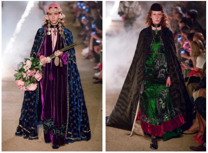 阴冷的雕塑,搭配一开场就断电的秀场,嘉宾们必须开着手电筒看秀,真的有种诡异又考古的感觉。模特们穿着Gucci当季的长袍斗篷穿梭在黑暗之中,甚至有点像博物馆的雕塑集体复活了。中世纪历经文艺复兴巴洛克直至今日的精美内部装饰,雕刻华丽的天花板,与描绘古罗马历史故事的壁画充斥着宫殿的每一寸空间。如此宝藏的博物馆简直不知道把眼睛放在哪里,难怪Alessandro Michele选择了“断电”。这一切或许该归功于Alessandro的“不按常理”的出牌,他把Gucci视作一个“时尚黑洞实验室”,种种反叛之举在这里都可以被正名。然而,博物馆只是他的“常规操作”,谁又能猜到Gucci居然会在真正的墓地办秀?改造成Gucci秀场的墓地,两边还散落着古老的石头棺材……也再次让人看见Alessandro Michele脑海里那不甘被世俗框架的任性与叛逆。在法国阿尔勒地区的阿利斯康墓园(Les Alycamps),神秘阴森的背影音乐中,模特们纷纷戴着面具从烟雾缭绕的氛围之中走出来。现代和古老的边界都被Alessandro Michele这位鬼才给打破了!当年梵高也为这座墓地画了幅画,引发人们对传奇风流人物的无限感慨,触发着游客观众的思古幽情。累积了不少负面舆论,但他强调:“这是Gucci的乐园:我要留下来,我要去感觉,我想要将这个小游泳池转变成一座海洋。”有了前面几年发布秀的沉淀,Alessandro Michele在设计这个系列的时候,感受到了更多的自由,从而为系列赋予了更自然的节奏。Alessandro Michele说:“我试图演绎更多属于当代年轻人的文化和时尚。”Alessandro Michele在秀场选址的天赋和才华是显而易见的,还曾相中千百年来风雨飘摇的西敏寺(Westminster Abbey)。坐落在伦敦泰晤士河北岸的西敏寺,始建于公元960年,原是一座天主教本笃会隐修院,1540年之后成为圣公会教堂。1987年,西敏寺与威斯敏斯特宫和圣玛格丽特教堂,一起被列入世界文化遗产。西敏寺建筑风格为哥特式,数个由彩色玻璃嵌饰的尖顶并列在一起,显得别致动人。教堂中间还有一处拥挤的墓场,埋葬有诸多伟大人物。在最里面的亨利七世礼拜堂中,并排陈放着悲剧性的女王玛丽,以及在伦敦塔惨遭杀害的年幼的爱德华五世及其胞弟的墓葬。Gucci选择在此处办秀,古老教堂和前卫时尚的对撞感,意式情怀与英伦庄严的矛盾感,身着华服的模特走过哥特风情的一砖一瓦,这空灵神圣的奇妙画面,都值得让此次大秀载入史册。Alessandro Michele认为:“每件服装都颤动着智识的张力,抗衡着制式。这是一场对墨守成规的反叛,争取差异是种不可剥夺的权利。”矛盾、有趣、多元化,什么好看、什么好玩,那就一同放进来。这种看似任性而为的方式,天马行空的怪诞设计,却让如今的Gucci成为炙手可热品牌的关键。不得不承认,这位大胆且勇于尝试的设计师,不仅成功“复兴”了Gucci,也使得它变成了全球最受欢迎、最赚钱的品牌之一。关过囚犯的古堡、沉睡的博物馆、烈火燃烧的墓园、千年飘摇的古寺……在Alessandro Michele的世界里,死亡、邪恶、禁忌都可以与美挂钩。他给Gucci交出的答卷,从未令人失望过,次次都是惊喜。Alessandro Michele一直身体力行用他的才华、他的智慧与思考为大众带来时尚与文艺复兴的新体验。只要有Alessandro Michele身影的地方,就像一个永远在骚动的“潘多拉魔盒”,你永远猜不到他下一刻会给你带来什么惊喜。精彩推荐: