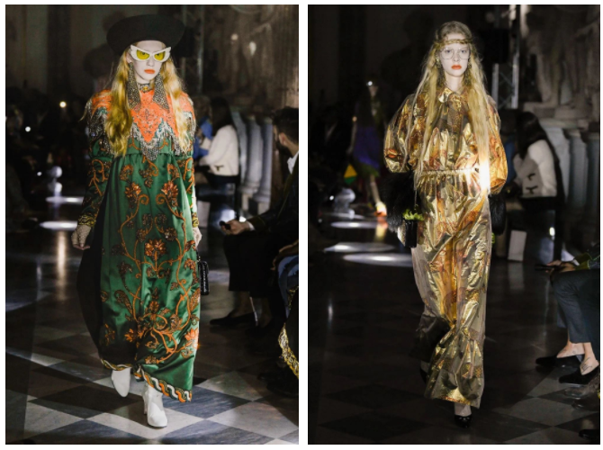 Alessandro掌管Gucci已经是第七个年头。这七年来,时尚本身在发生质的改变——从高级时装屋走向街头,再从街头回归高级时装。但似乎只有Alessandro的设计并未受到影响,一直坚持着自己的设计理念:无性别、多元化、包容统一。在相引和对立的两面进行着平衡与创造,在过去、现实与未知之间搭建起桥梁。Alessandro Michele试图将世界变革,用意大利女演员、艺术家Silvia Calderoni的原话来说就是:“光怪陆离的行人;百卉千葩的邻里;以及令人摸不着头脑的‘自己’……”Alessandro的存在,对Gucci这个历史长达280年的品牌形象进行了重塑,并在奢侈品市场上争得了一席之地。开云集团总裁兼主席François-Henri Pinault也表示:“Alessandro Michele出众的才华与愿景能够为Gucci带来全新的现代潮流视角,从而带领Gucci掀开品牌历史上让人激动的创意新篇章。”Alessandro的才华毋庸置疑,复古美学、多元文化、创意策划、艺术家的跨界合作——Gucci身上这些吸引着无数年轻人“骚动”的要素,正在成为品牌未来的核心方向。Alessandro总是喜欢将每一季早春作品,带到这些古老而神秘的地方,在宗教、艺术、历史的浓郁氛围中遨游。罗马永远不缺少游客,来自世界各地的人们无不以瞻仰的心态来朝拜这座最古老的博物馆,Alessandro Michele亦是如此。Gucci 2019早春系列,Alessandro Michele将秀场选在了古老的罗马卡比托利欧博物馆(Musei Capitolini)。馆里收藏了大量的古罗马雕塑、挂毯、钱币、宝石,以及中世纪和文艺复兴艺术、宝石、钱币等等,以及提香、丁托列多、鲁本斯、卡拉瓦乔等大师的杰作。