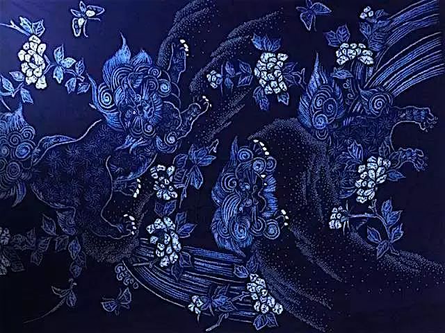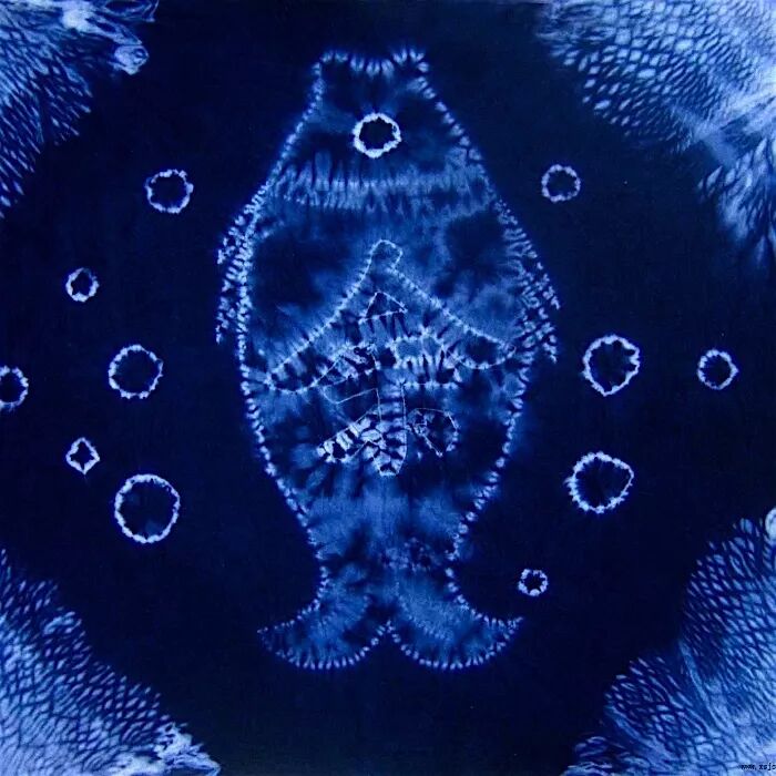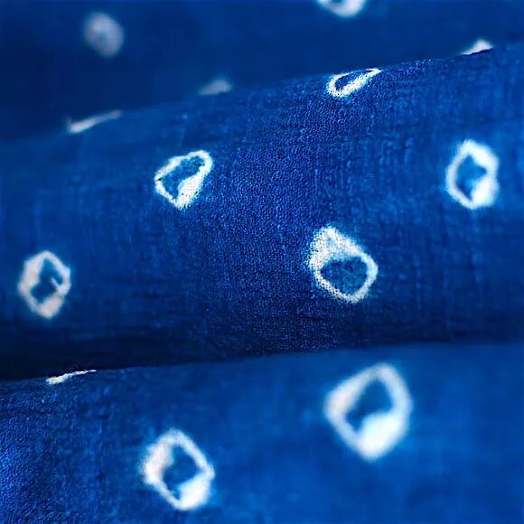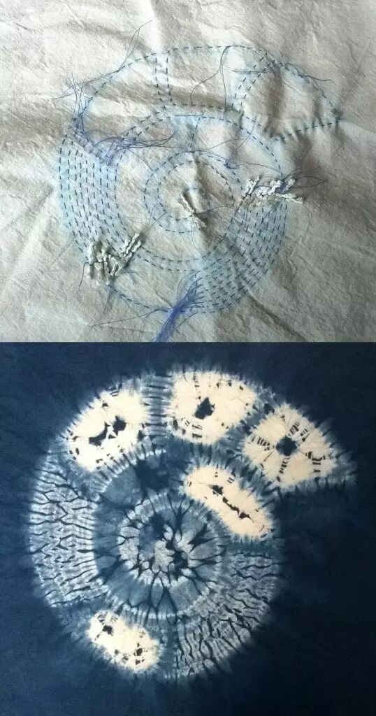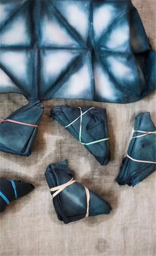 它是用绳子以各种方式捆绑的布料会因染料无法渗透入捆绑处而形成各种深浅不一、层次分明的色晕和皱印的特殊的图案效果。