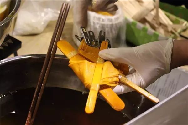 用两根筷子或者夹子把布夹在一起,使中间被夹的地方不受到染料的浸泡而产生花纹。