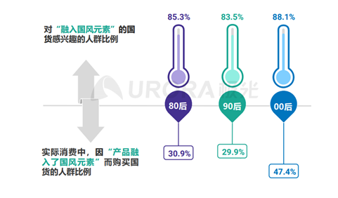 图表1-5 不同代际人群对国风元素的喜好与消费
