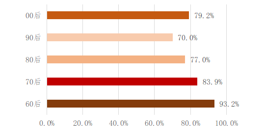 图表1-3 不同代际人群对国产品牌的购买偏好度