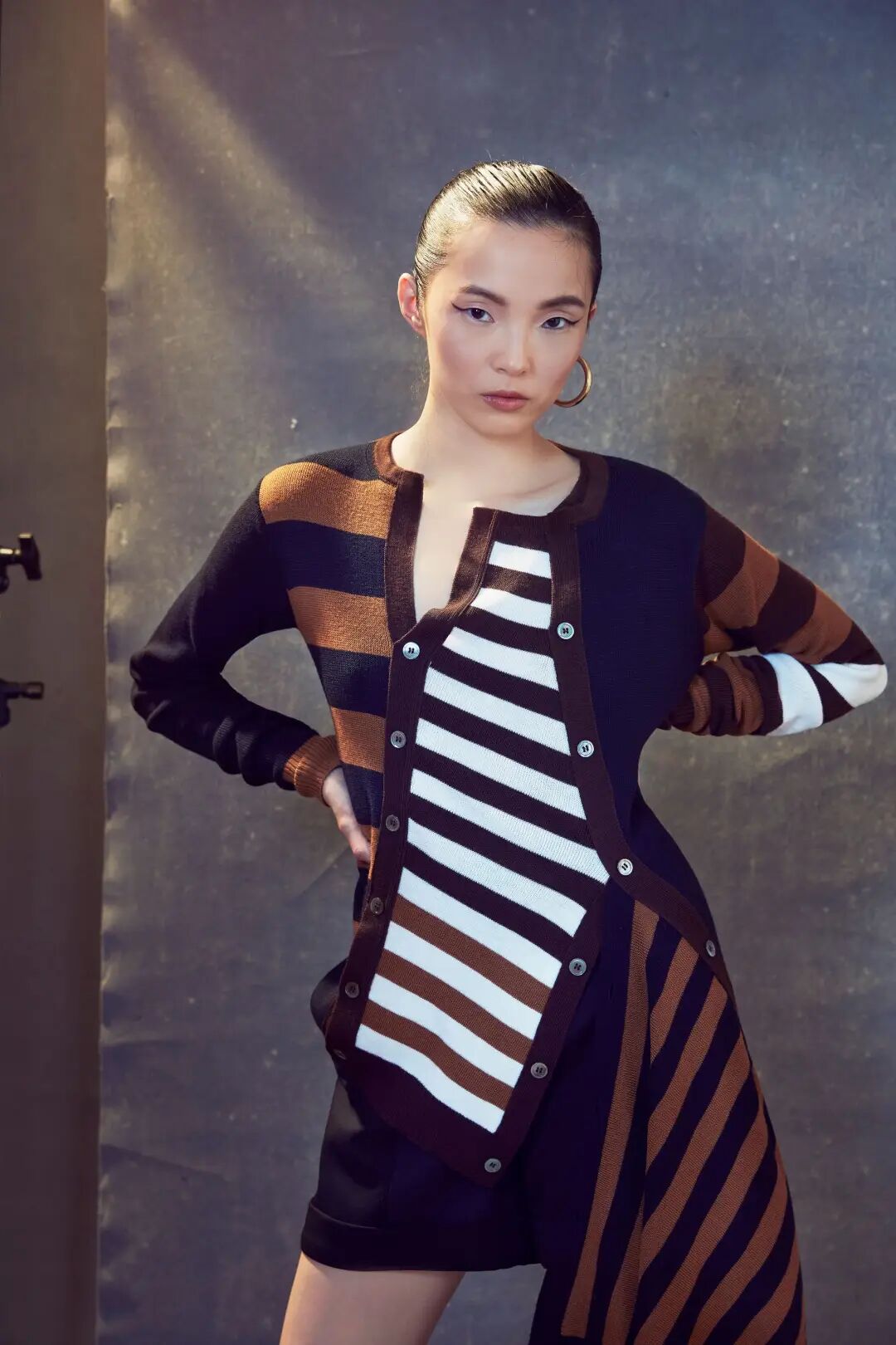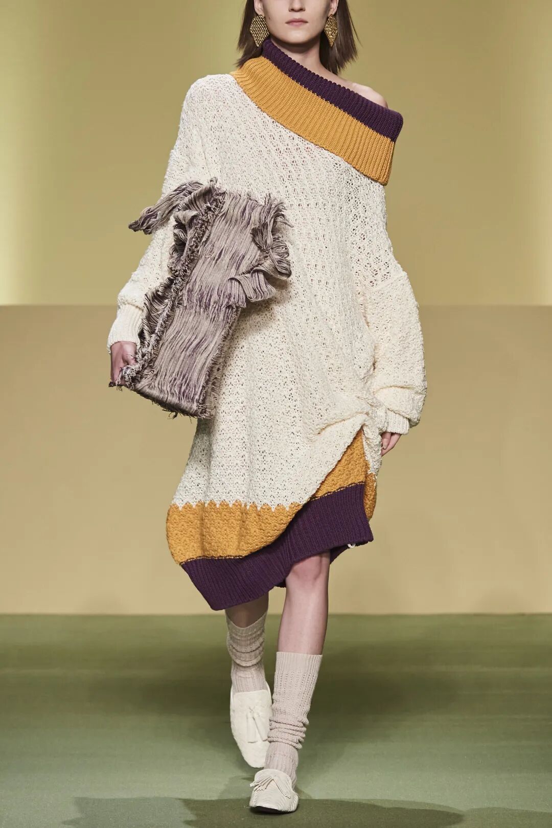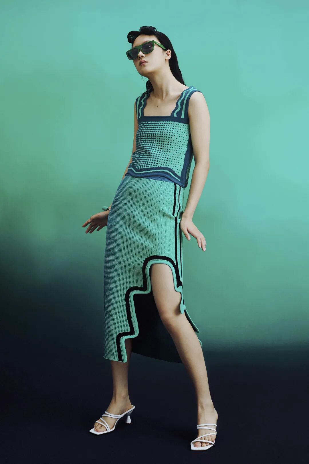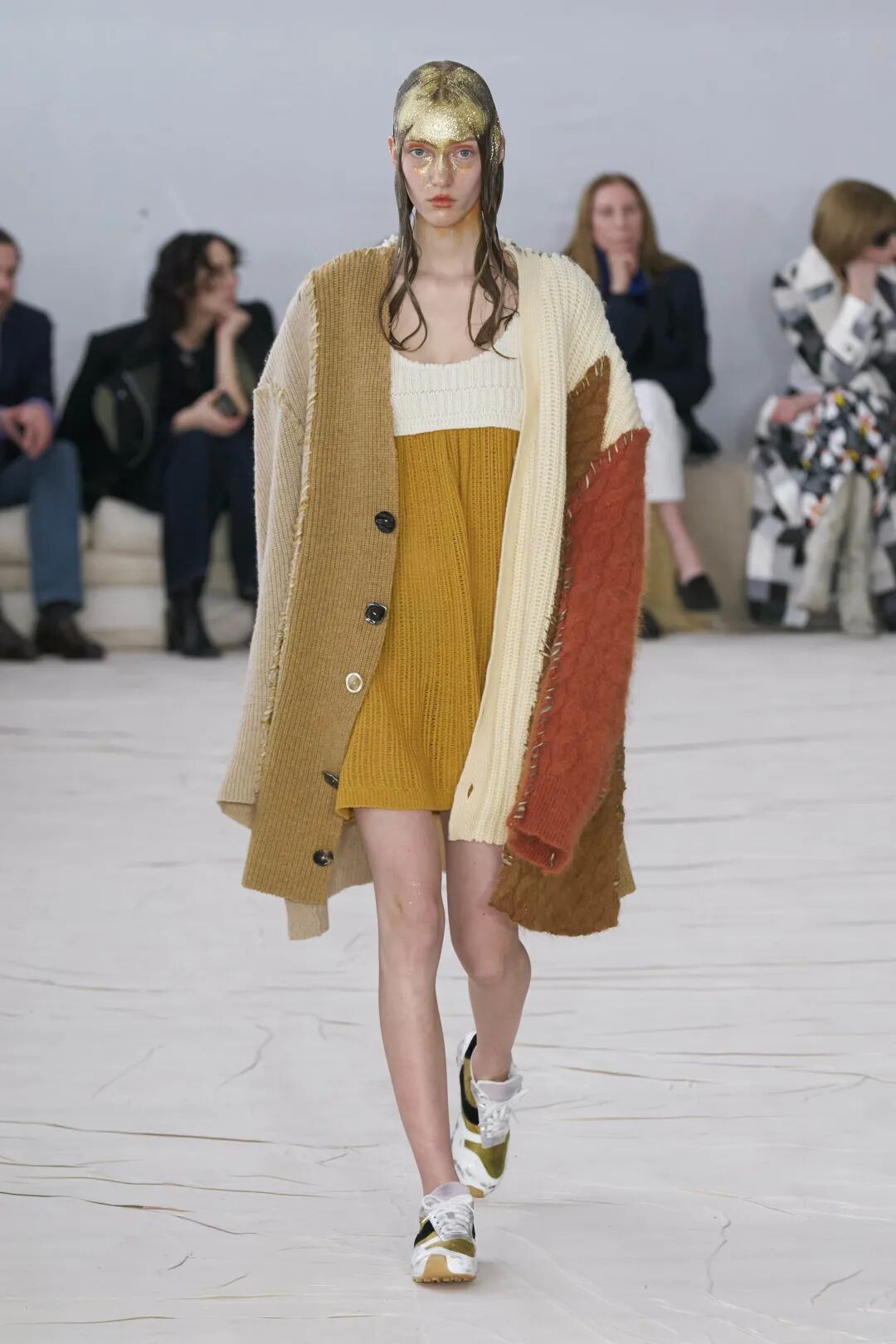 通过色块拼接和不同材质碰撞出有趣的混搭外观,并利用多种纹理的针织零料打造创意拼缝,在极简风格的基础上大胆混入对比色及不同风格的纱线外观。迎合全新的生活风尚理念,选用的醒目色彩和撞色的个性针织可以为疫情生活增加些许喜悦感并振奋情绪。