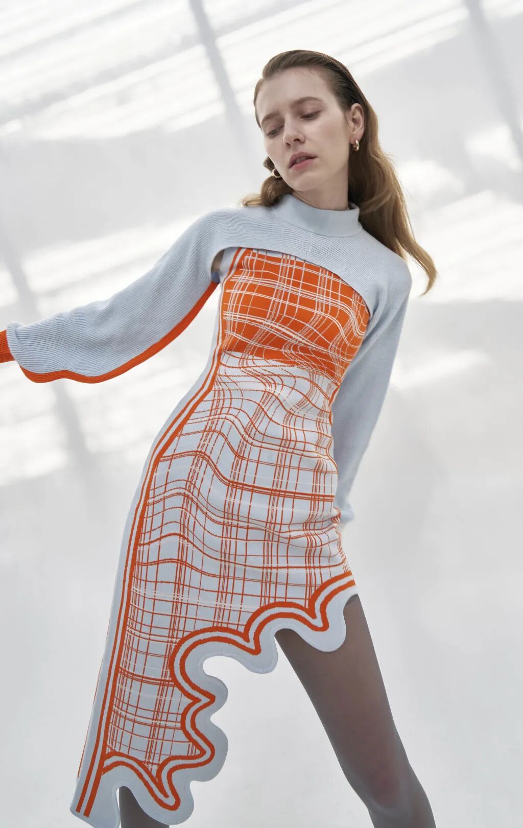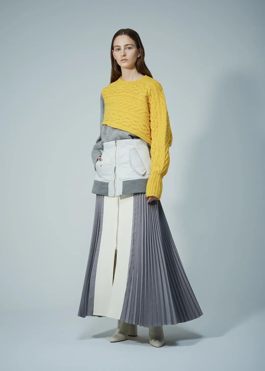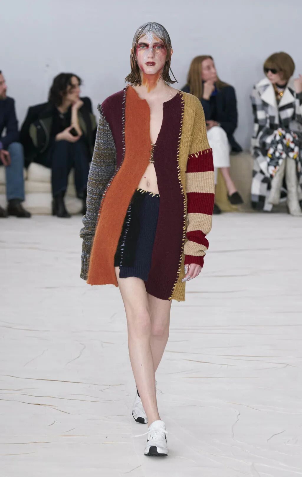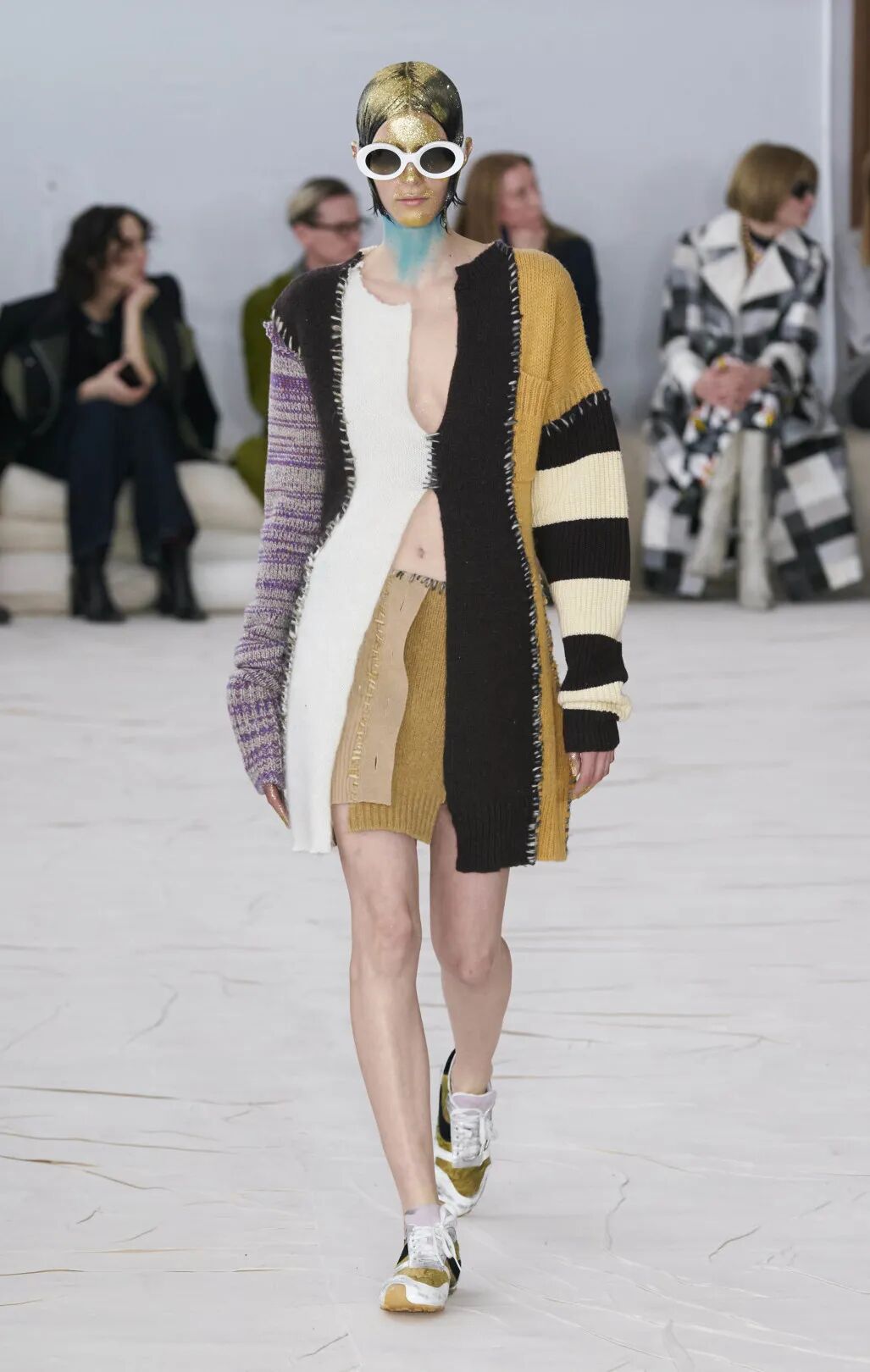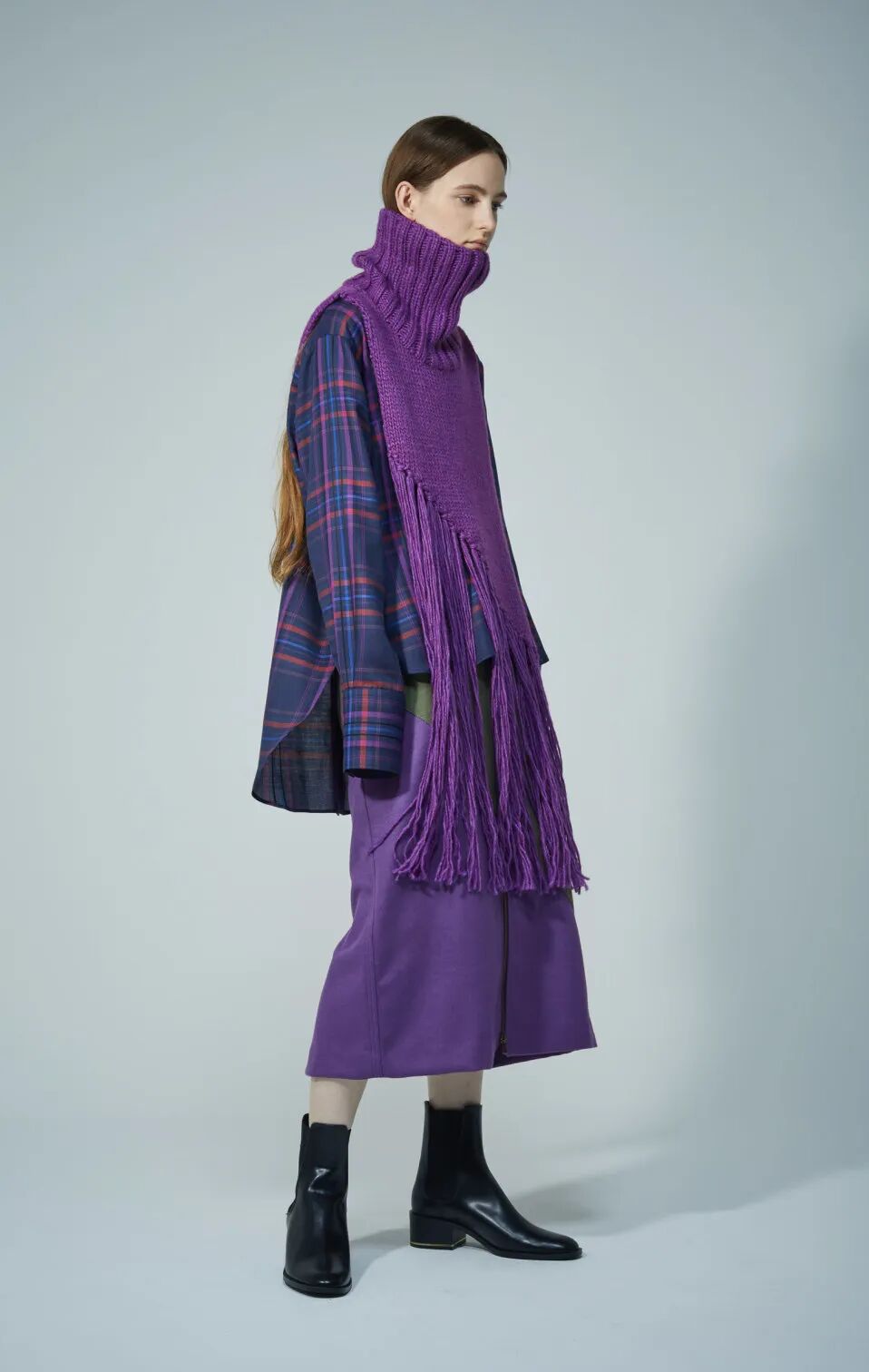 通过色块拼接和不同材质碰撞出有趣的混搭外观,并利用多种纹理的针织零料打造创意拼缝,在极简风格的基础上大胆混入对比色及不同风格的纱线外观。迎合全新的生活风尚理念,选用的醒目色彩和撞色的个性针织可以为疫情生活增加些许喜悦感并振奋情绪。