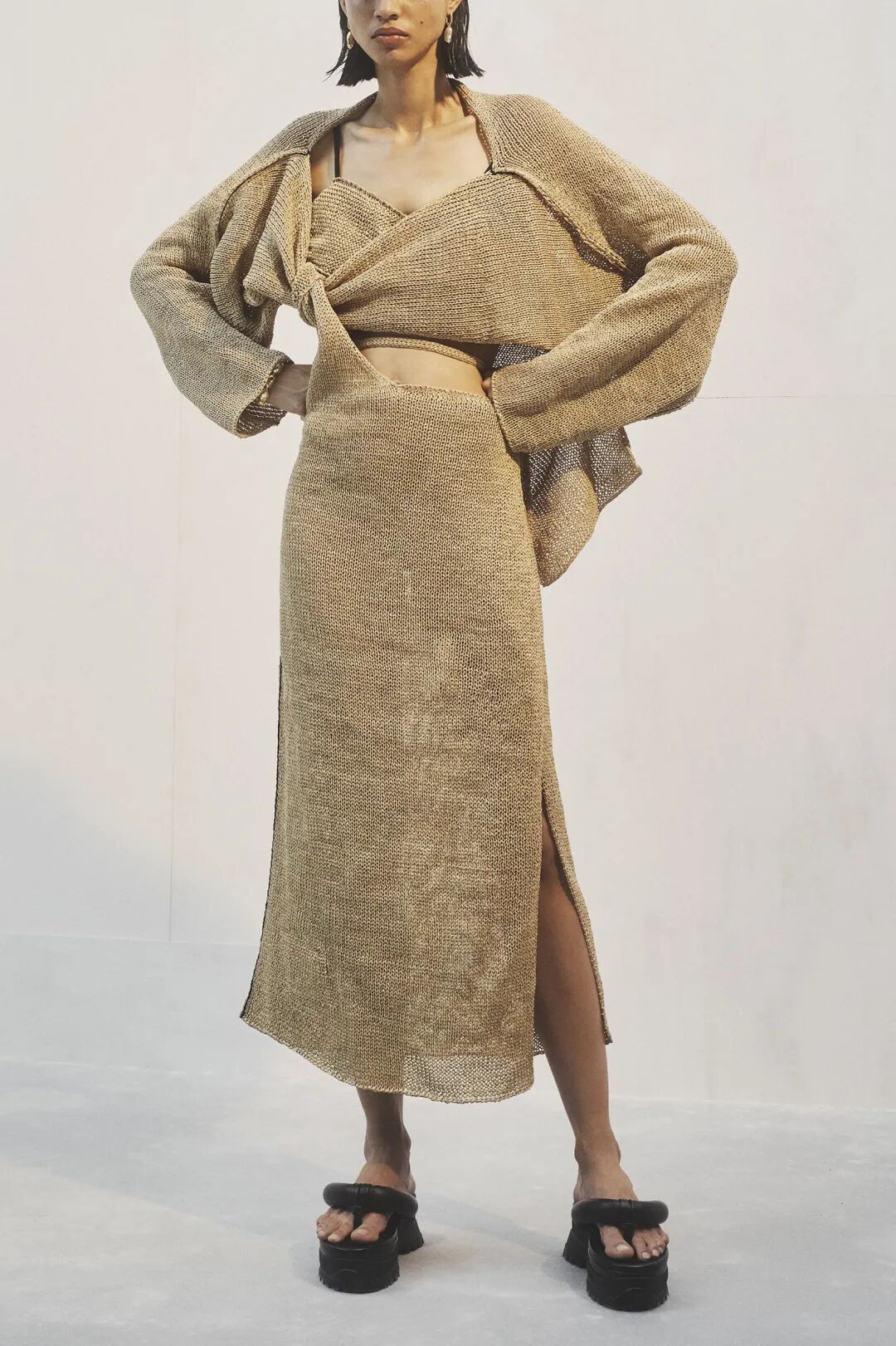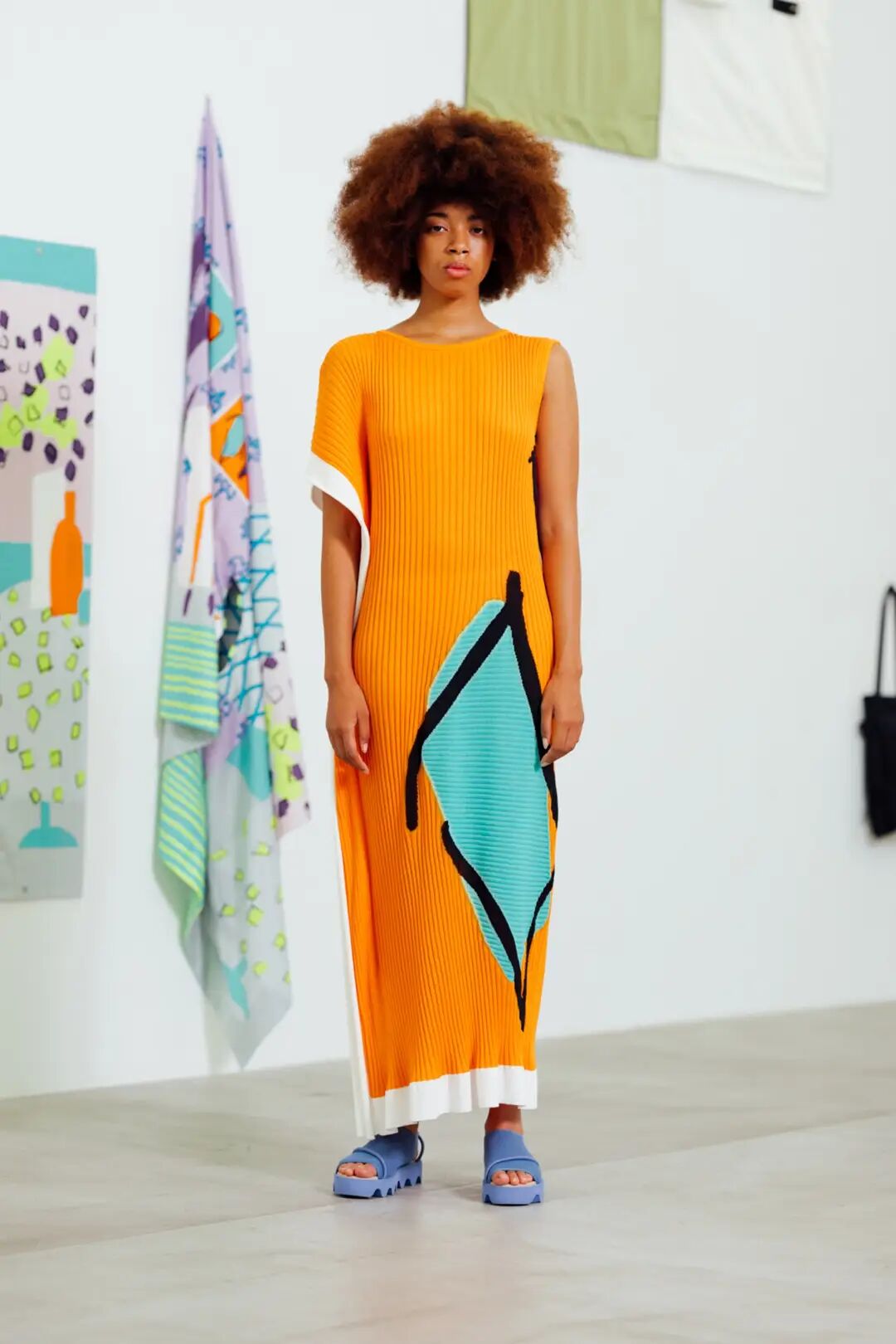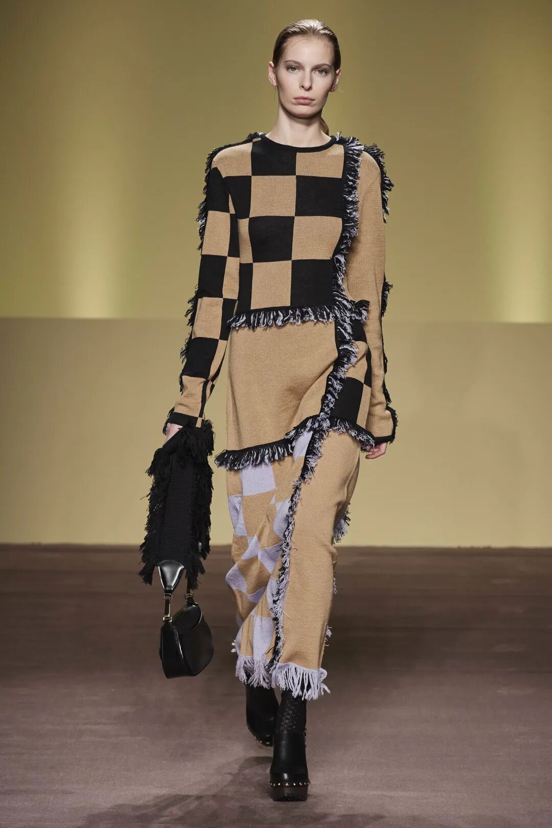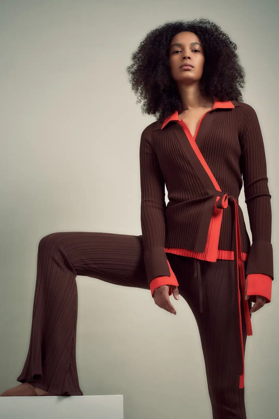 通过色块拼接和不同材质碰撞出有趣的混搭外观,并利用多种纹理的针织零料打造创意拼缝,在极简风格的基础上大胆混入对比色及不同风格的纱线外观。迎合全新的生活风尚理念,选用的醒目色彩和撞色的个性针织可以为疫情生活增加些许喜悦感并振奋情绪。