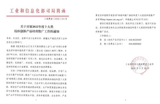通知公告 | 关于开展培育和推广2022年度十大类纺织创新产品工作的通知
