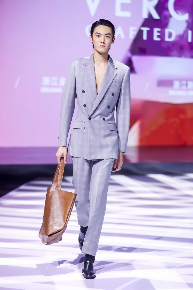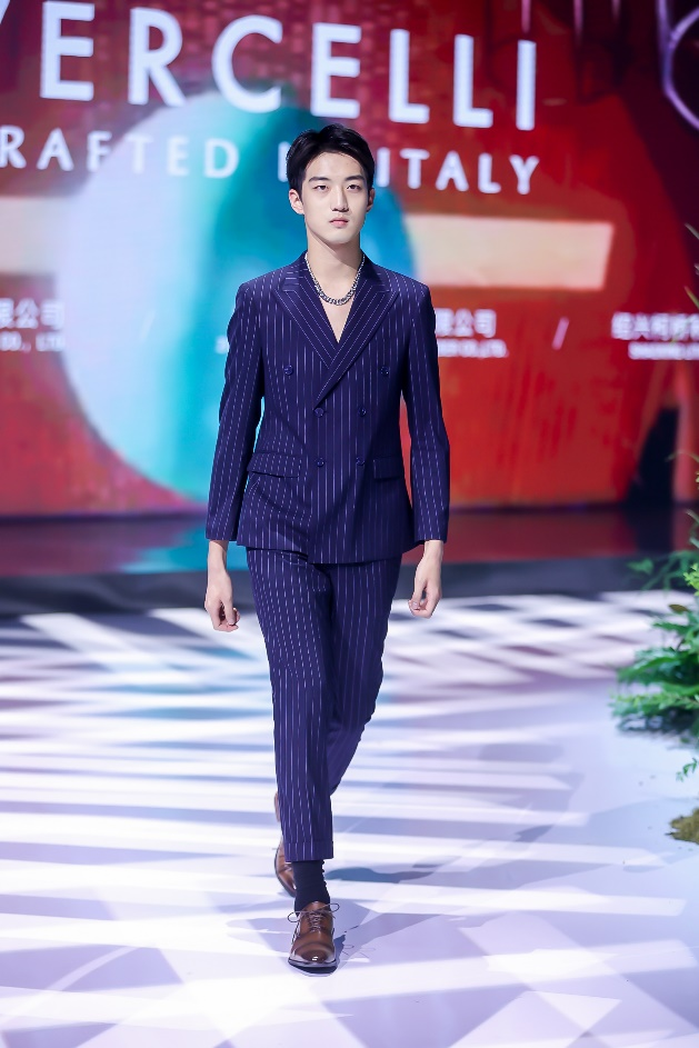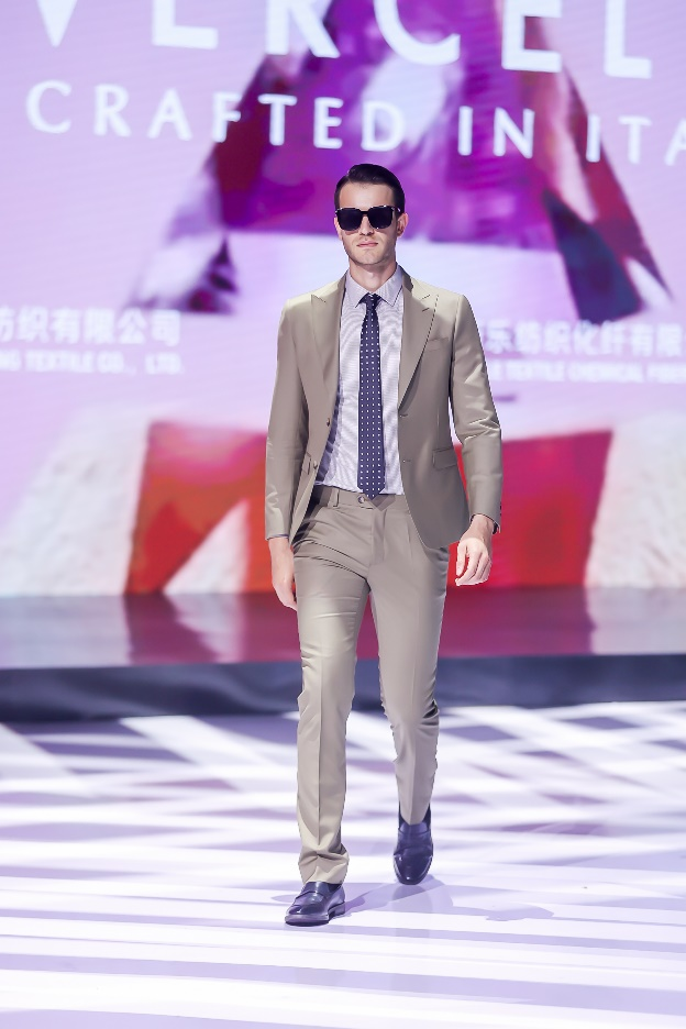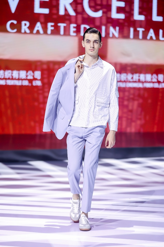 在“自由、活力”主题秀演中,意大利品牌Vercelli设计师Guido Bertagnolio携手天浩国际、浙江金晟纺织有限公司、浙江新乐纺织化纤有限公司、绍兴柯桥利泰衬衫布有限公司四家企业,用意式风情打造了正装、西装的多元风格时尚。设计师充分结合四家企业甄选的可降解可循环再生的新型纤维素纤维雅赛尔与天然粘胶纤维、竹纤维等生态环保面料的特性和优势,一改以往意式职场商务的传统形象,打破正装、西装的固有形式,采用精致的色织条纹与经典的威尔士格纹,以绿色环保加持高端质感,营造了商务、休闲、轻奢于一体的新风尚。