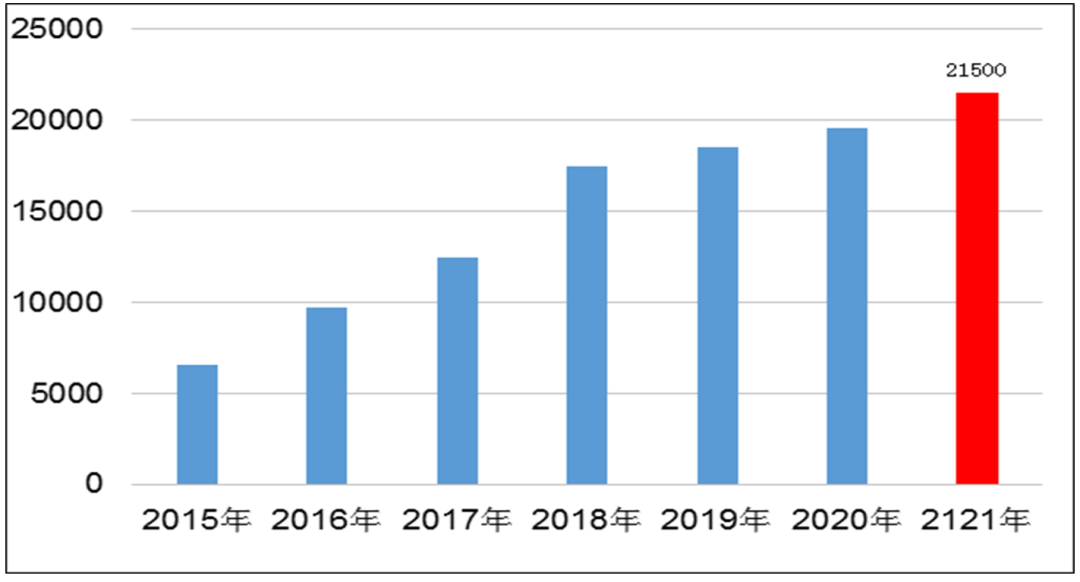 2021年,新冠疫情持续影响全球经济,线上消费习惯巩固并深化,网络直播、社交媒体、平台经济等对服装产业链影响进一步加深,品牌服装在淘宝、抖音、快手等直播平台全面发力,服装直播间、带货主播、直播基地、工厂直播等服装直播产业链渐成体系,推动专业市场、面辅料加工制造、品牌设计、展览展会等B2B电子商务快速发展,电子商务成为推动服装消费互联网向产业互联网迈进的先导力量。2021年我国服装电子商务B2C市场交易规模约2.15万亿元,两年平均增长约8%,网购渗透率达到45%左右。