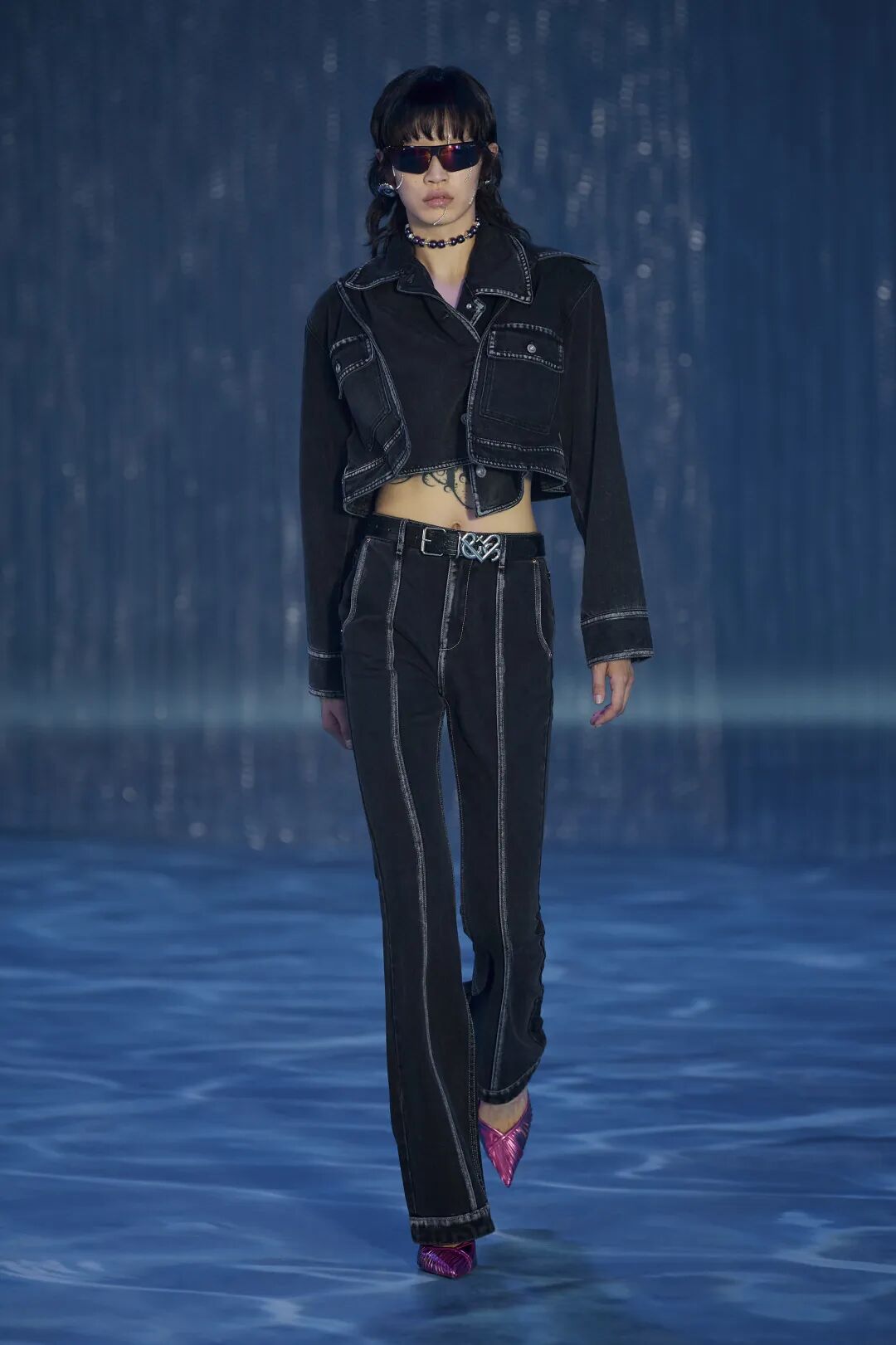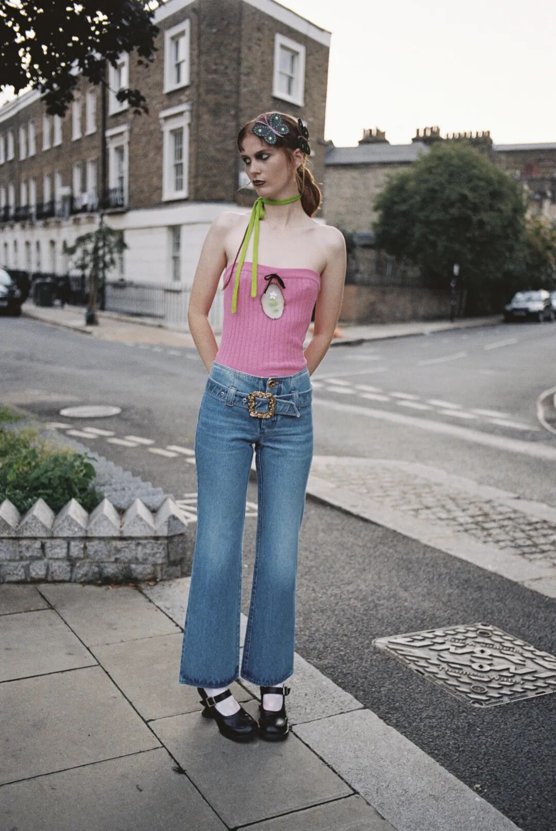 高腰款式对于商业消费者而言仍然极为关键,而在面向前卫消费者时,不妨推出喇叭型裤摆样式的Y2K千禧风低腰单品。