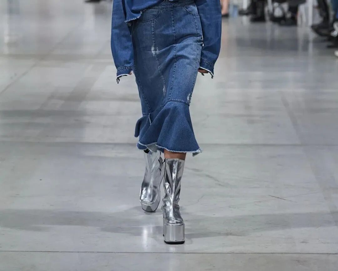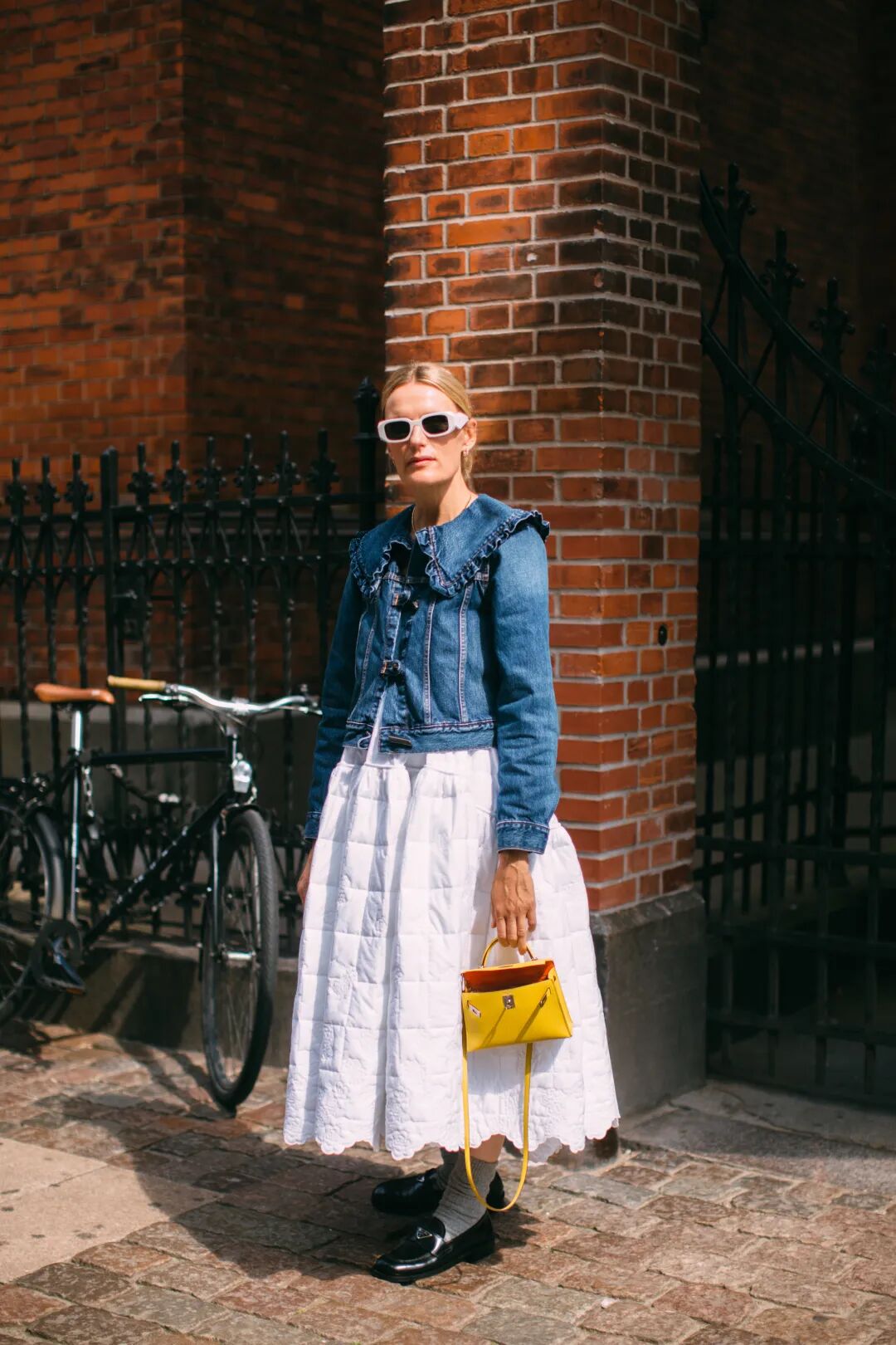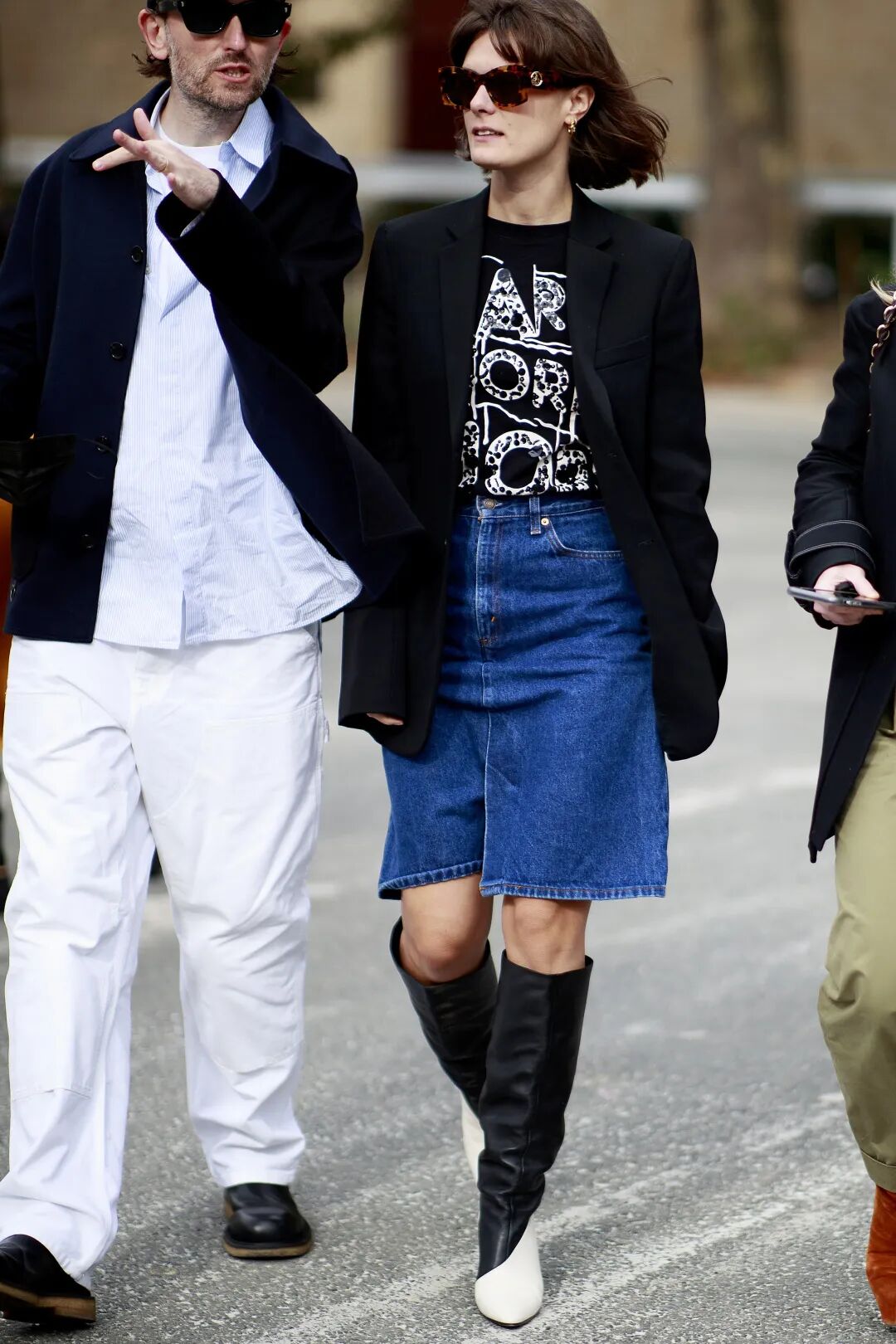 颇显雅观的中长半身裙呼应着90年代风格和商务休闲趋势。纵观秀场和街头,简洁石洗外观的及膝款式随时可见。