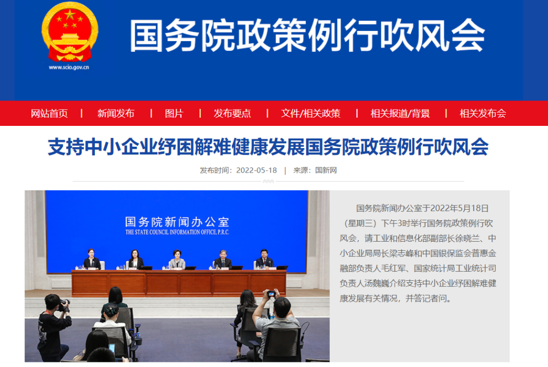当前国内外环境复杂性、不确定性都明显增加,很多像服务业的中小企业以及处于产业链末端的中小企业出现了一些经营困难,中小企业普遍反映订单难找、成本难降、账款难收、融资难求、人流物流难畅通,难以正常生产经营。新一轮疫情对中小企业经济运行带来了较大冲击。5月18日,国务院新闻办公室举行国务院政策例行吹风会介绍支持中小企业纾困解难健康发展有关情况。
