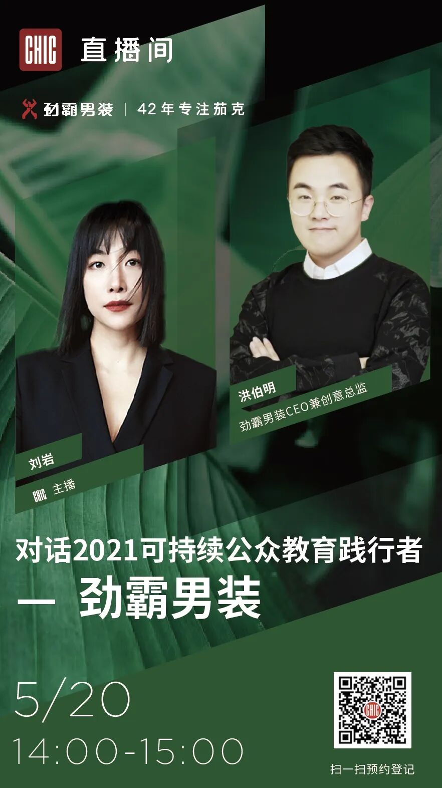 直播预告 | CHIC直播间:对话2021可持续公众教育践行者——劲霸男装