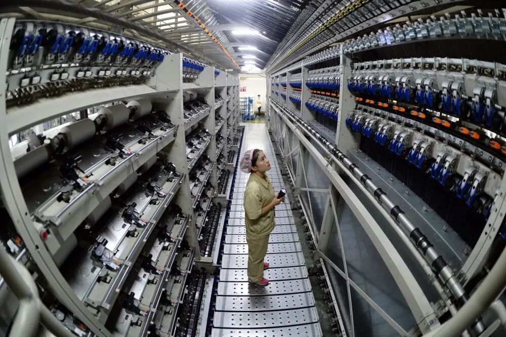 盛虹化纤自动化车间内,员工正在检查丝道。(受访者供图)
