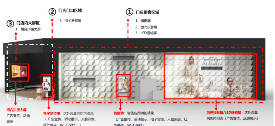 橱窗是展示品牌形象的窗口,也是传递新品上市以及推广主题的重要渠道,是智能门店的核心。随着“新零售”模式的逐步落地,线上和线下将从原来的相对独立、相互冲突逐渐转化为互为促进、彼此融合。