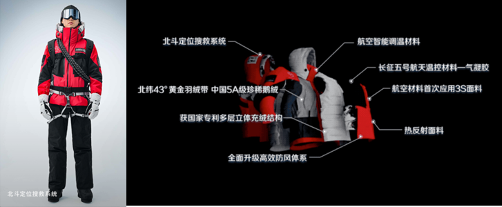 内嵌北斗定位搜救系统的智能羽绒服(来源:波司登)