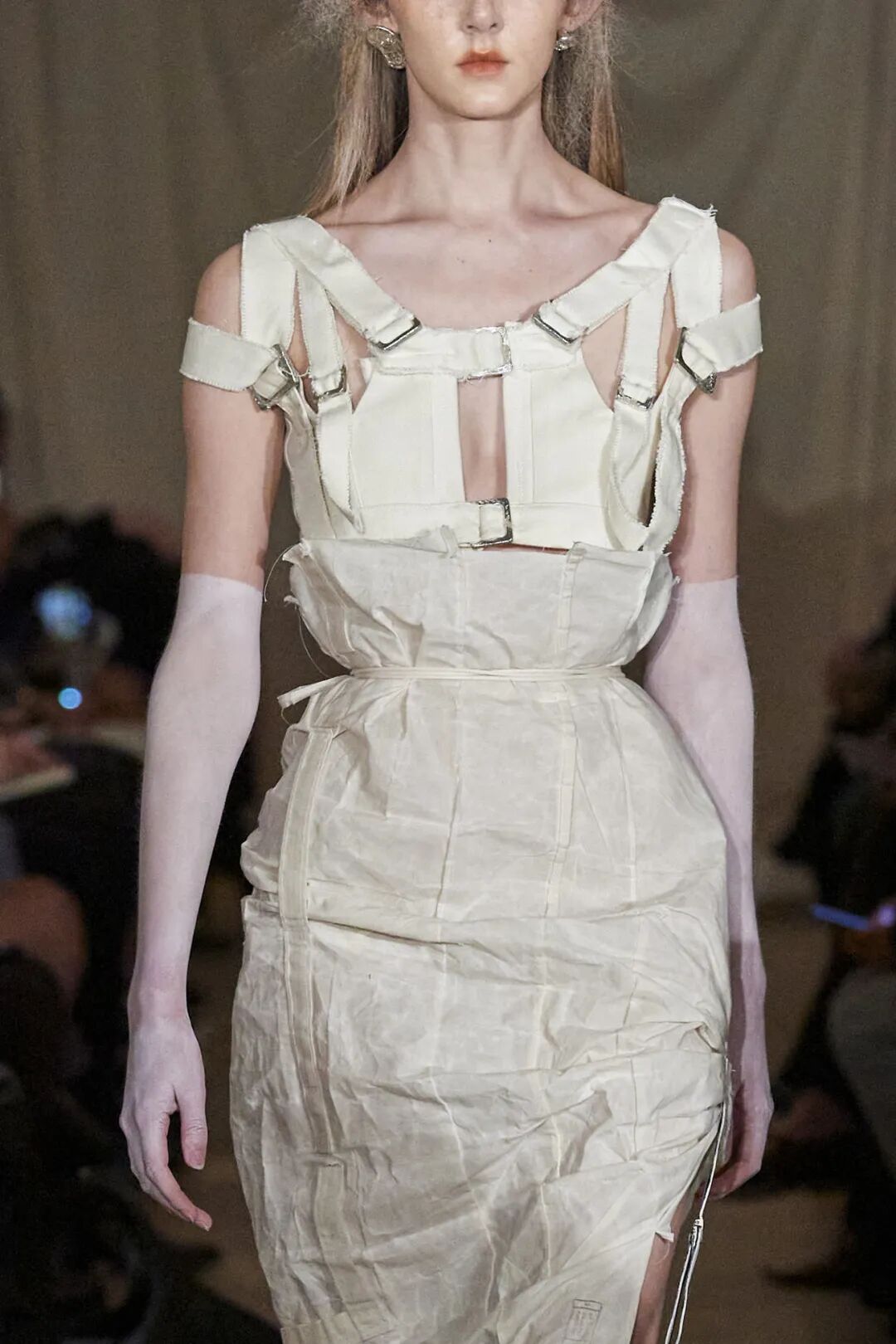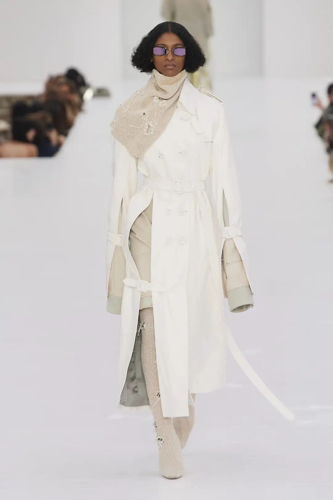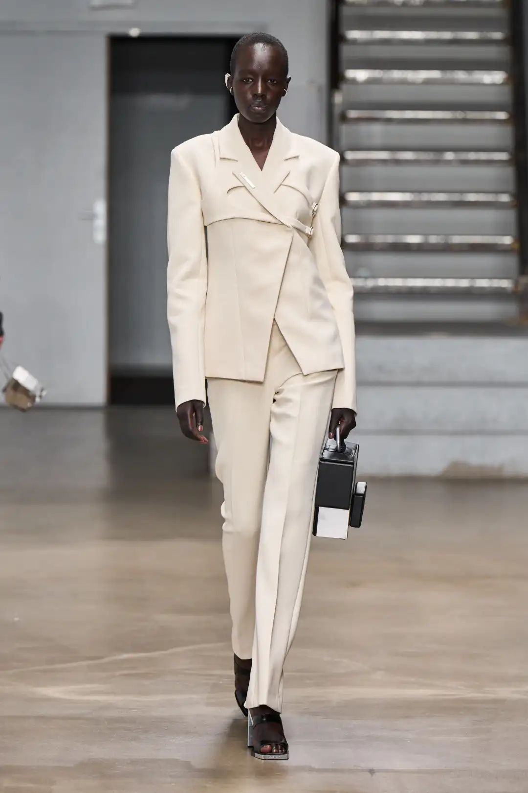 同色调搭配的条带风靡T台,主要由皮革和原布辅料制作。单一材质便于回收,Heliot Emil、Acne Studios、Noon by Noor等重要品牌都在设计中最少化了金属的使用。