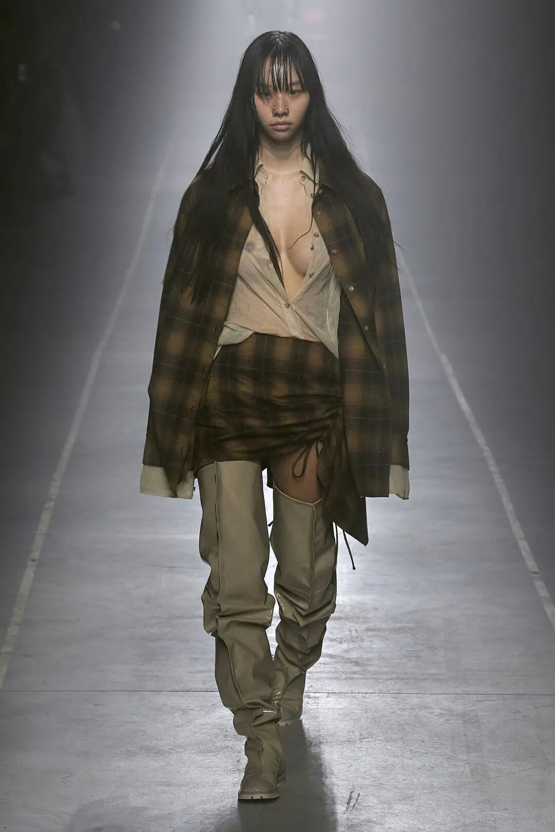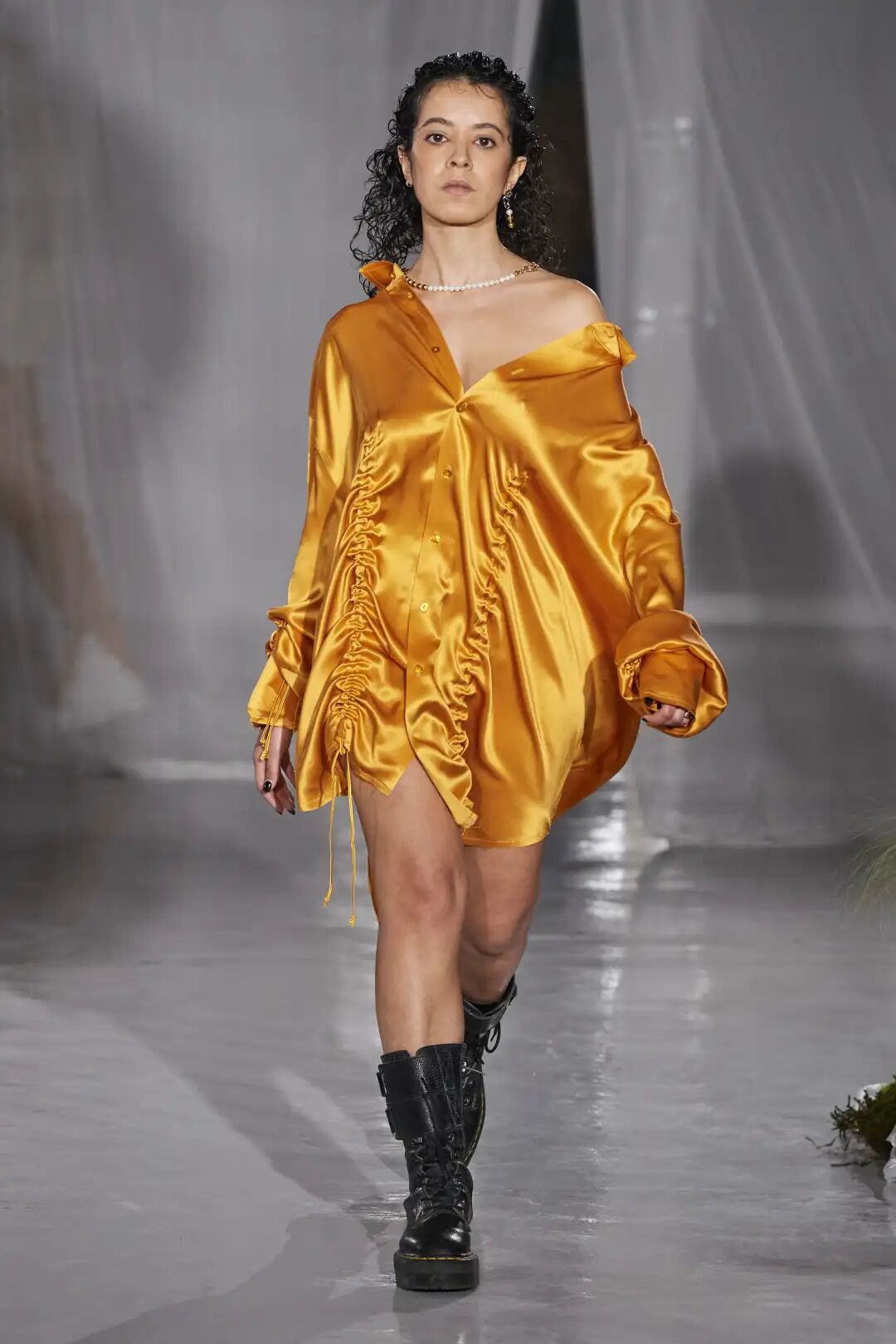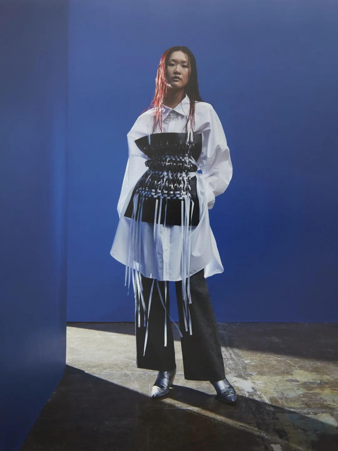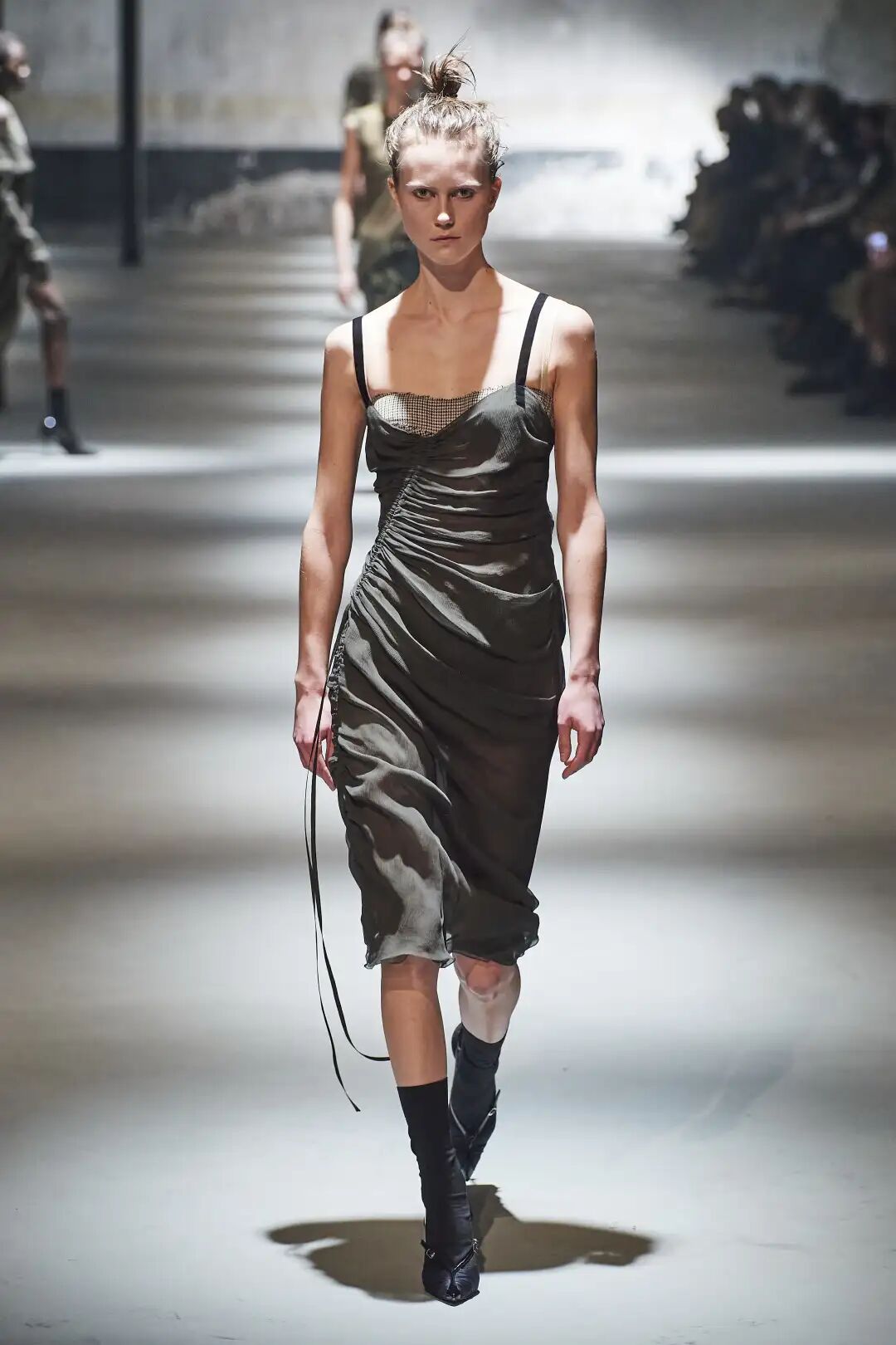 同色调搭配的条带风靡T台,主要由皮革和原布辅料制作。单一材质便于回收,Heliot Emil、Acne Studios、Noon by Noor等重要品牌都在设计中最少化了金属的使用。