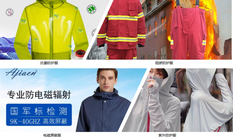 防护服是保障作业人员安全的必需品,不同行业根据自身作业和环境特点研发了适合本行 业的防护服。防护服要从安全、舒适、工效和耐受限度四个方面来衡量。如军用防护服、民用防护服等