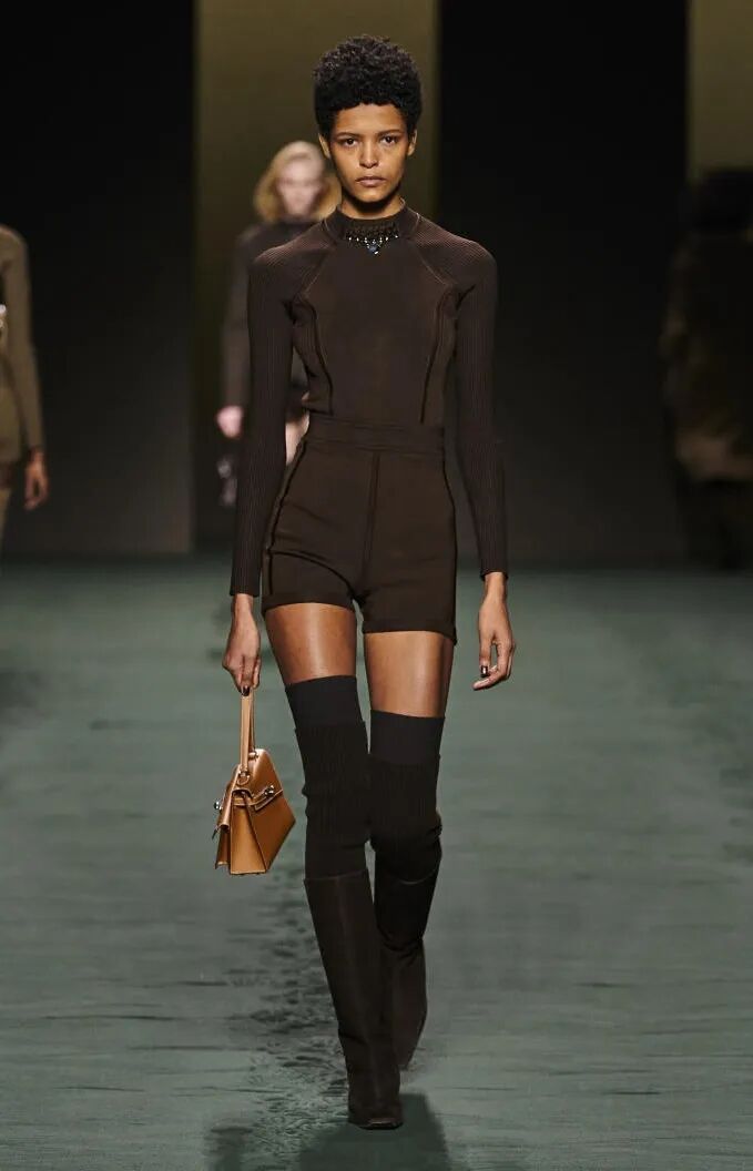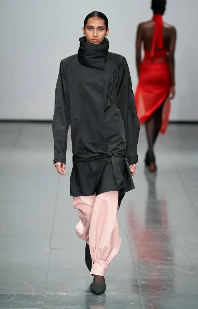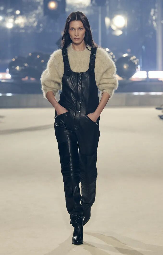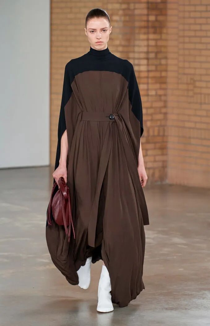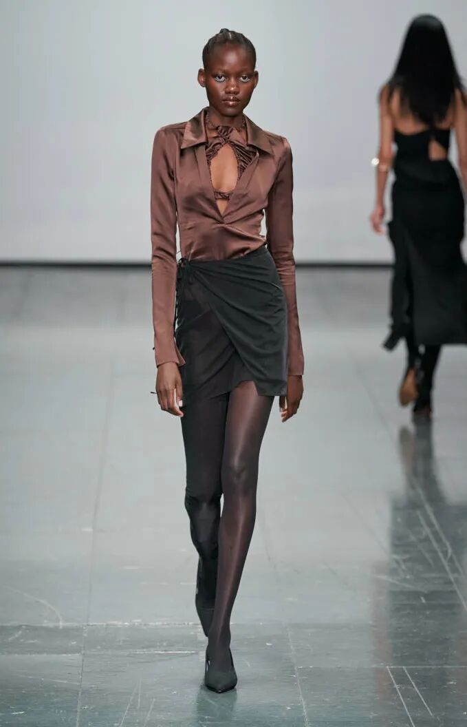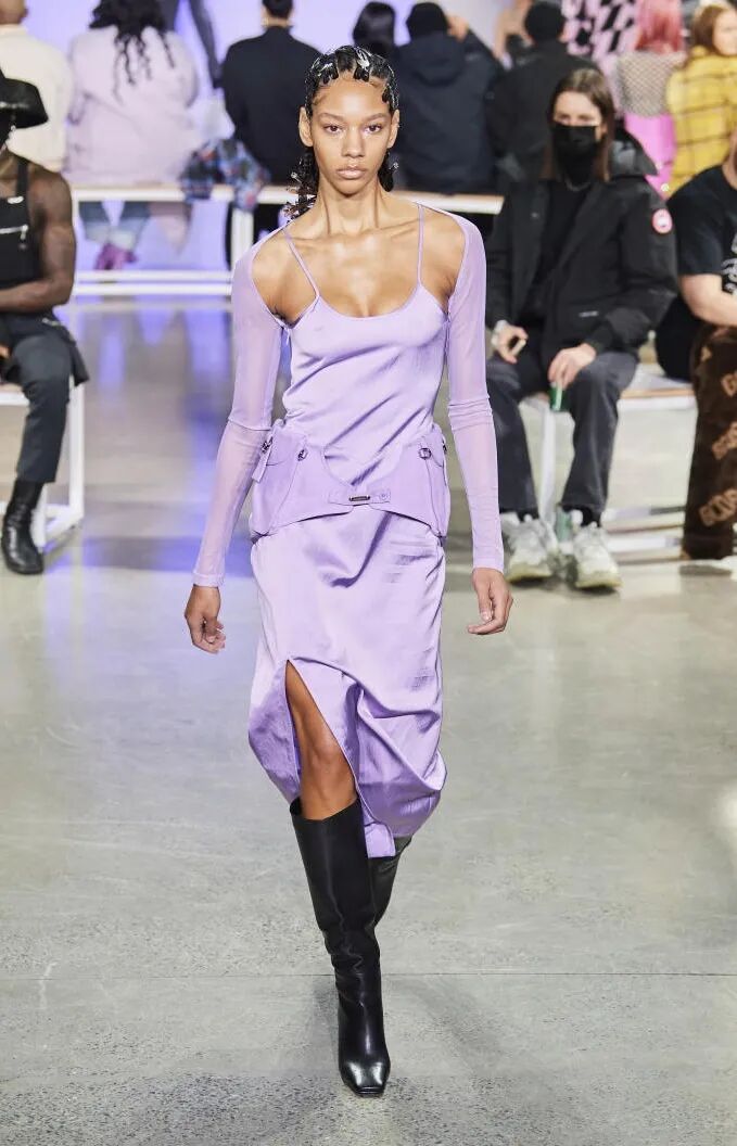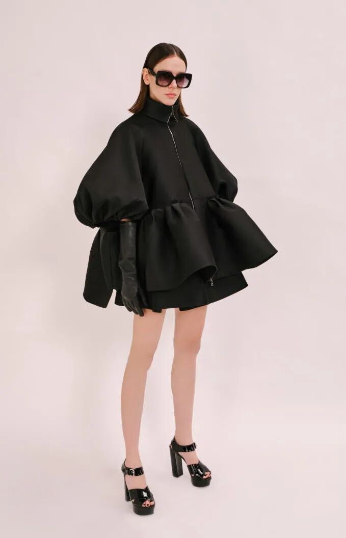 简单的黑色调可以搭配薄纱、蕾丝和高光泽面料,黑配黑的层搭设计则有助于塑造立体感外观。鞋品方面,黑色调适用于实用靴款。