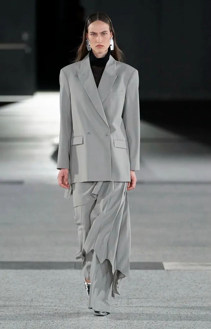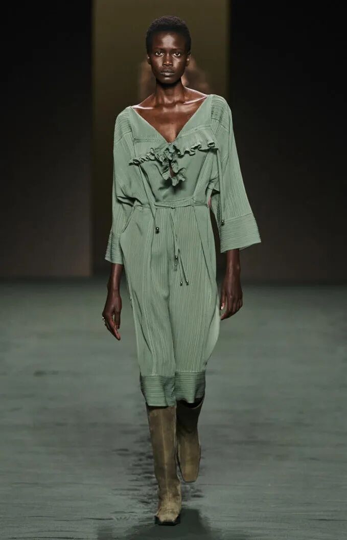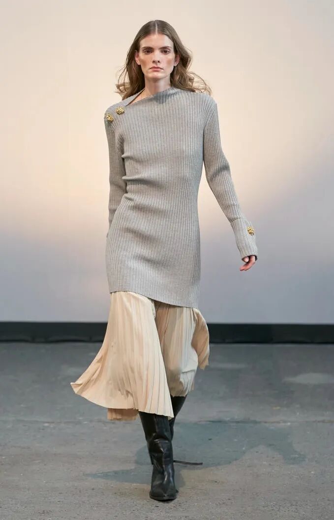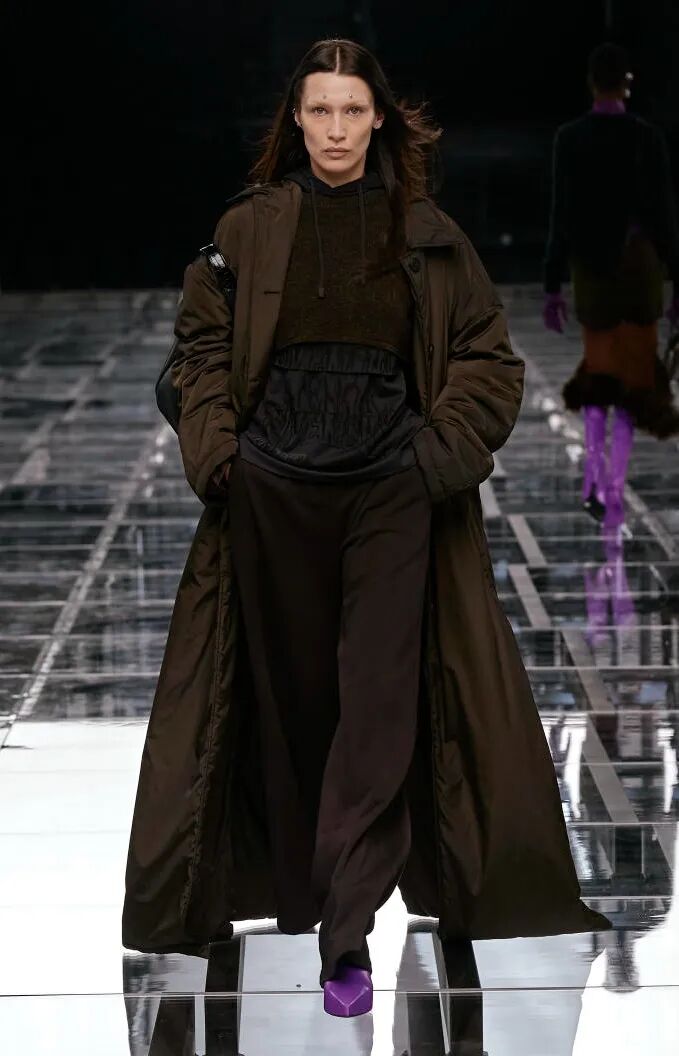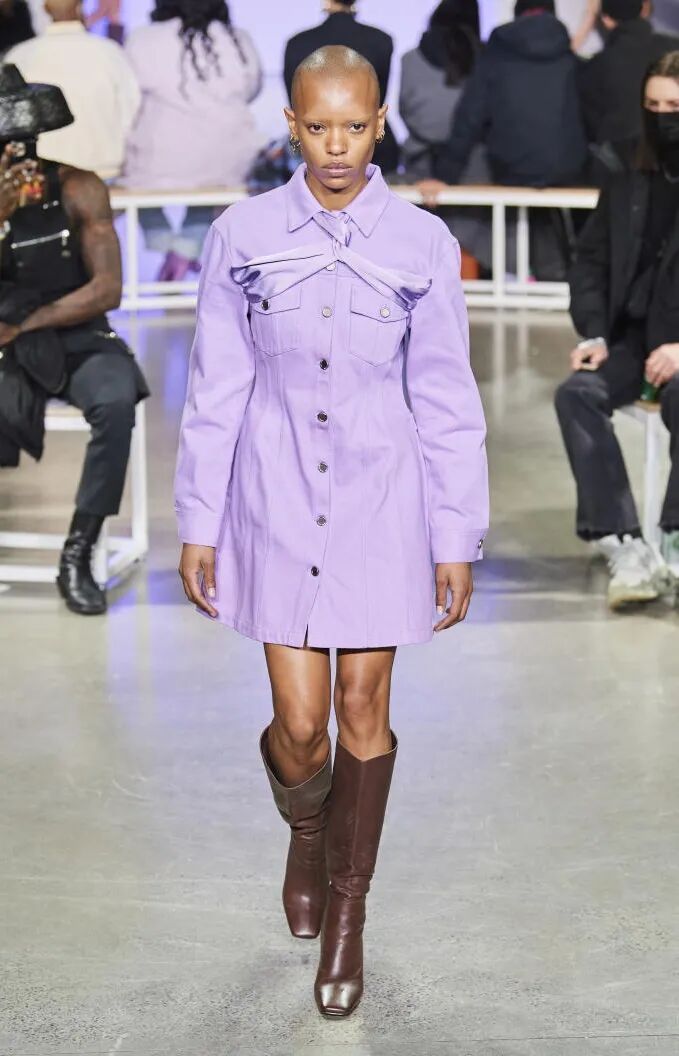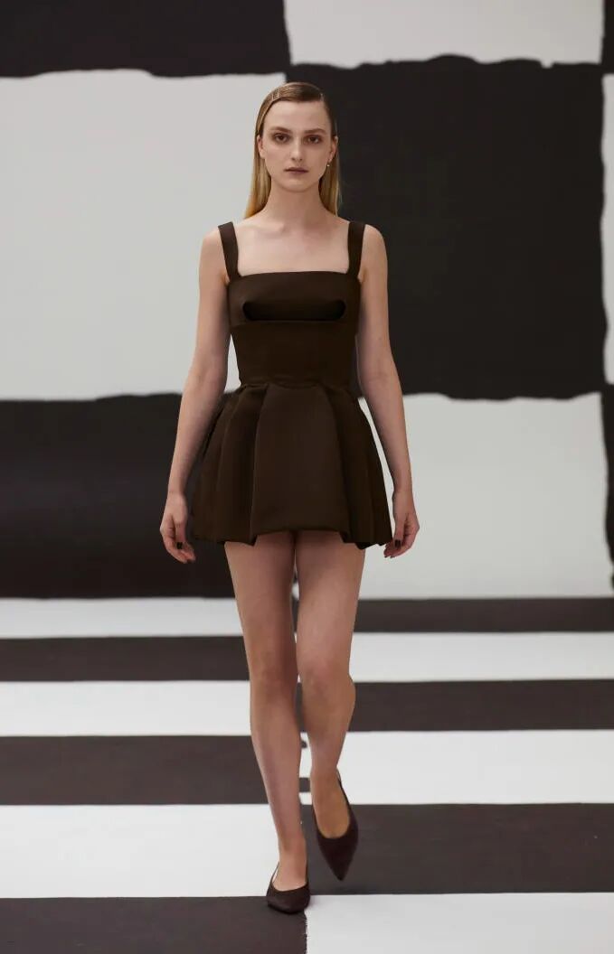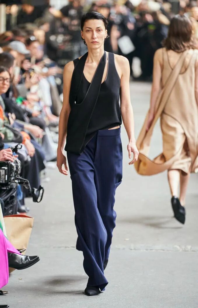 简单的黑色调可以搭配薄纱、蕾丝和高光泽面料,黑配黑的层搭设计则有助于塑造立体感外观。鞋品方面,黑色调适用于实用靴款。