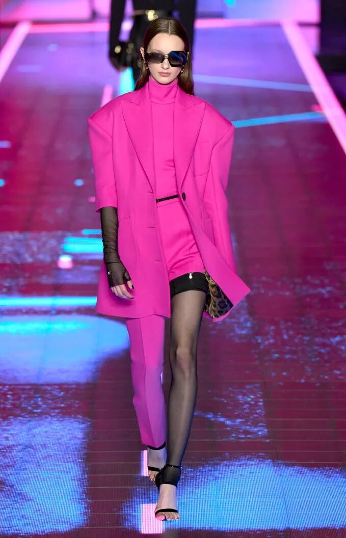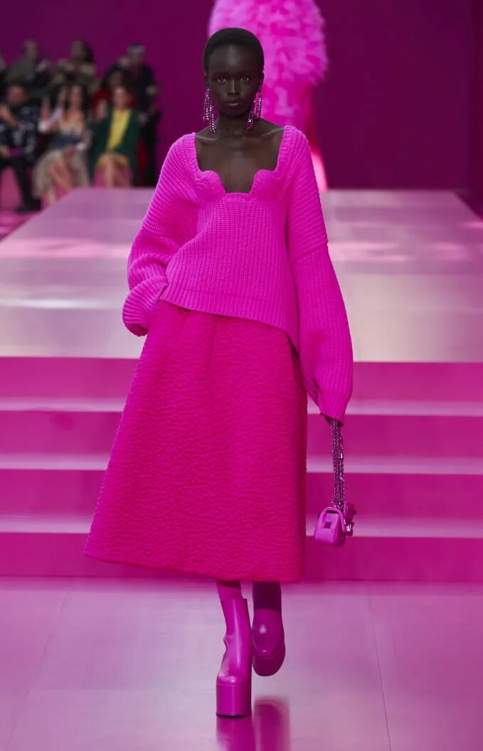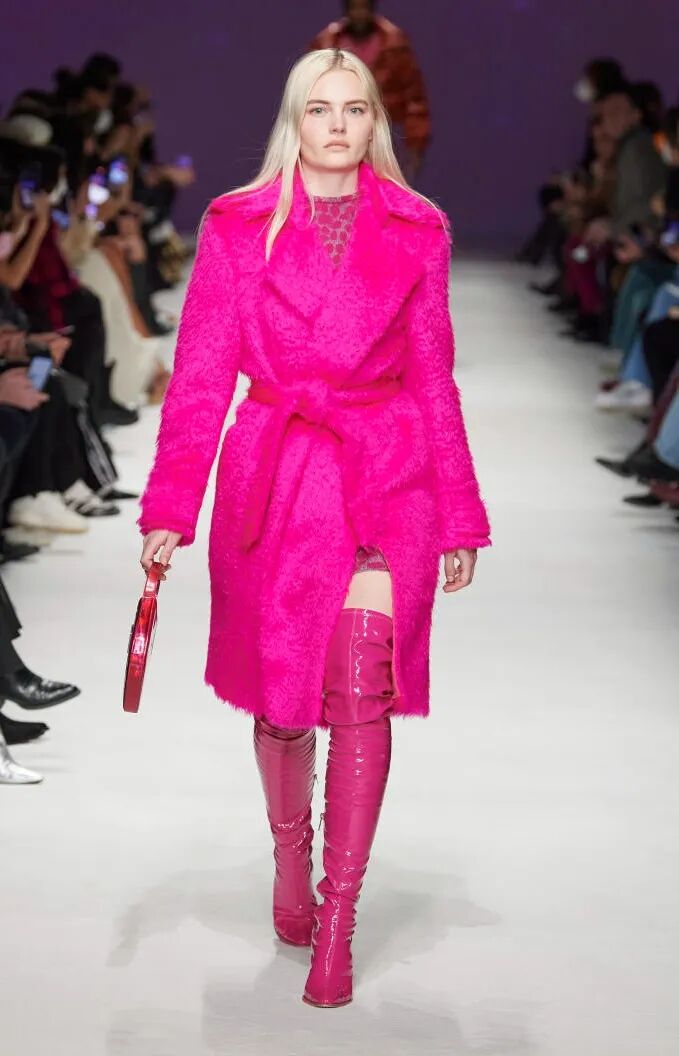 醒目的超亮粉极具吸睛力,堪称社交媒体造型的理想选择。建议用这款冬季亮色,呼应欢乐设计趋势。