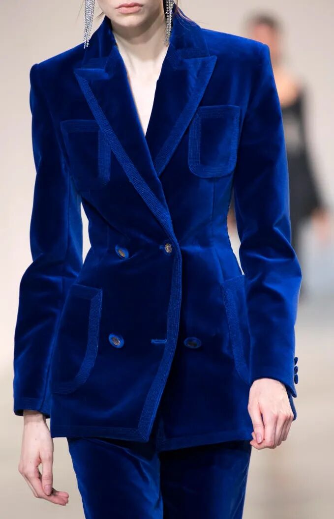 从外套、西服到礼服,建议在各类产品中使用该色调,并搭配天鹅绒面料以提升质感。
