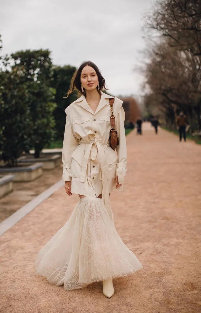 作为多类产品的上佳之选,燕麦奶色、OffWhite米白色、粘土粉、镍色等色调不再以舒适度为重点,而是主打考究美学。建议应用在礼服和简约波西米亚款式中。