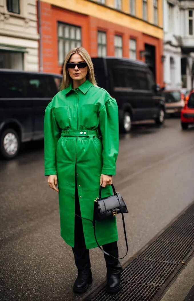 绿色最常用的配色就是搭配同色系、驼色、蓝色、白色和黑色等。