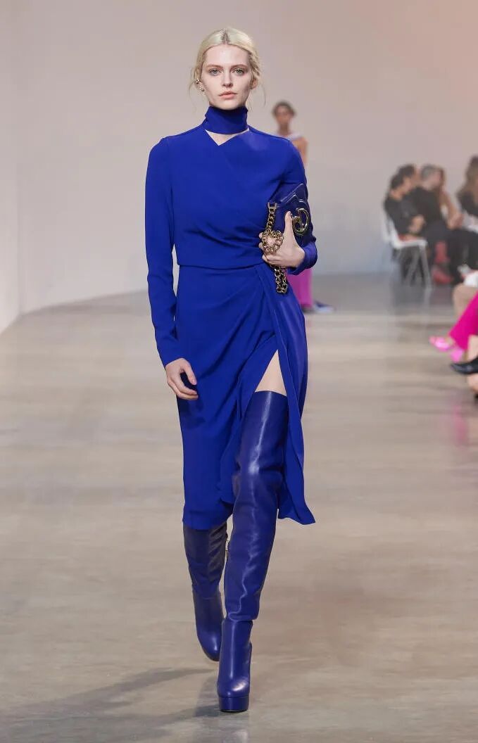 本季,奢侈品牌再一次青睐极具个性和数字感的鲜明原色调。性能蓝演变为更具质感的银河钴蓝色,令连衣裙、外套、鞋品和配饰尽显个性风范。