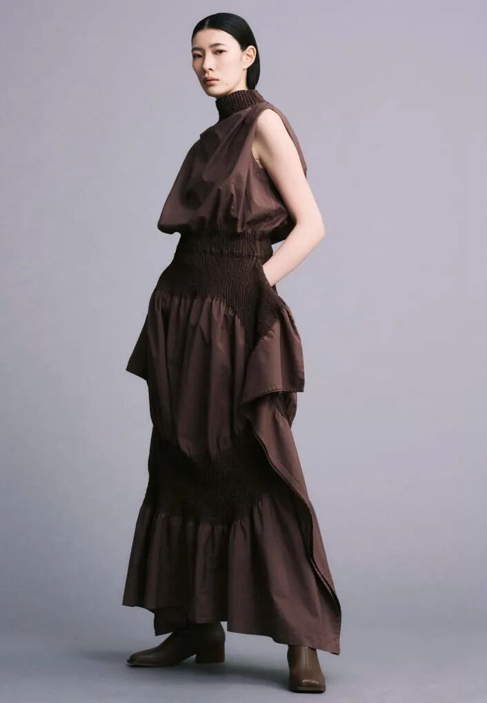 深橡木色是服装、鞋品和配件的完美选择。更新连衣裙和单件时,建议在轻薄的光泽感面料中使用该色彩,借此融入现代礼服趋势。