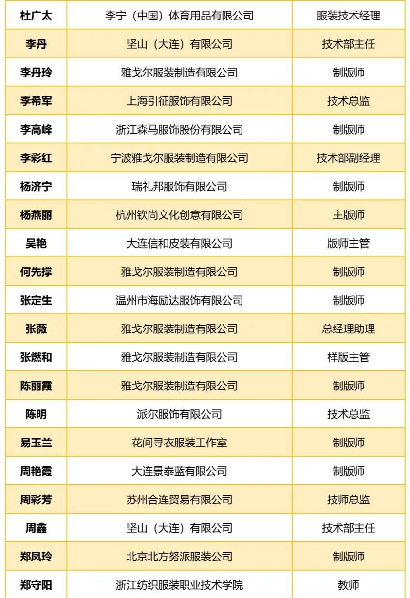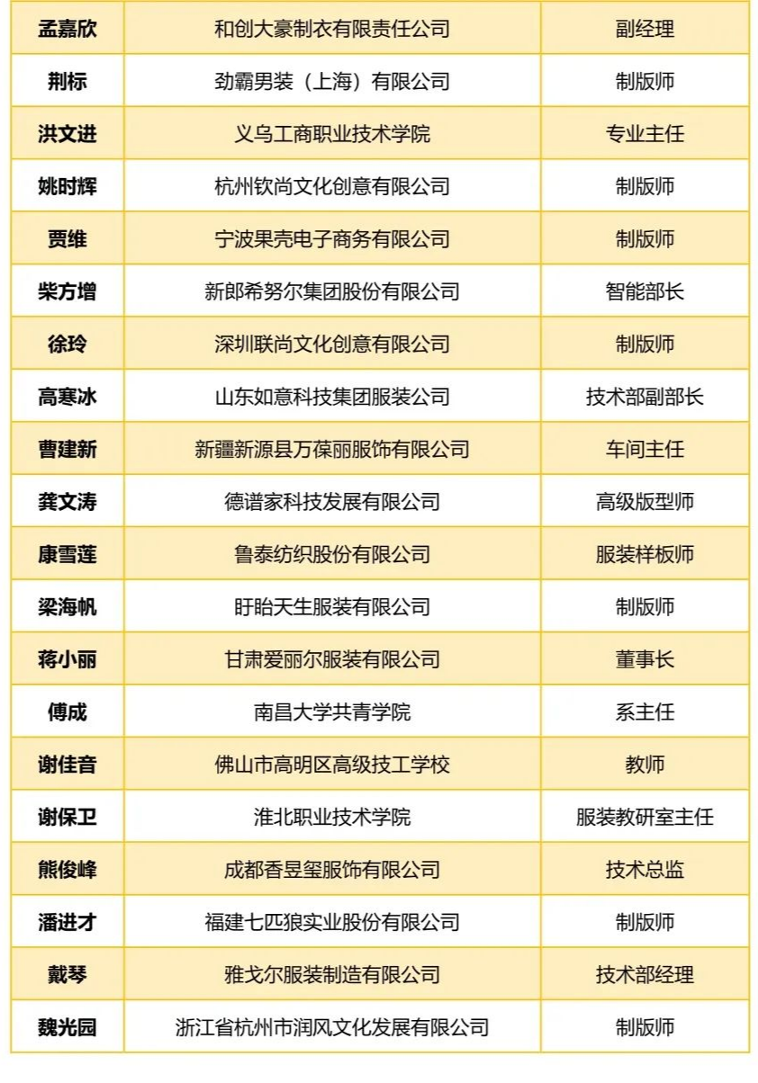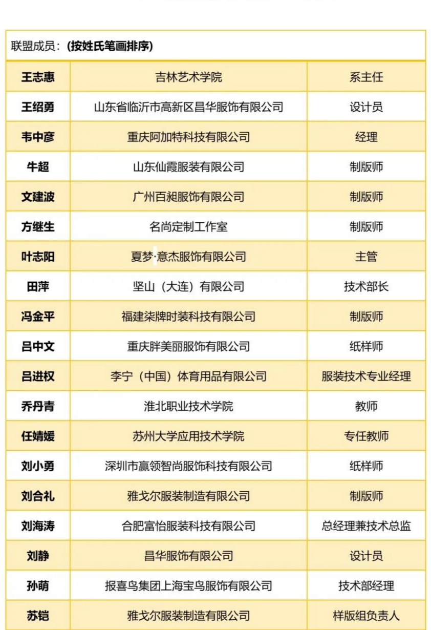 2022年“中国服装版师大联盟”成员名单