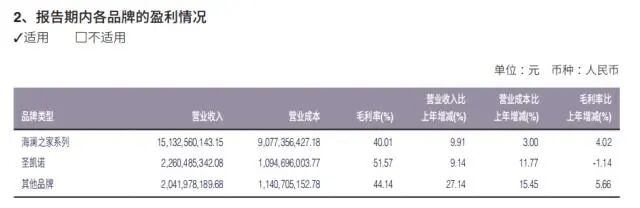 需要说明的是,在2021年3月,海澜之家更名为“海澜之家集团股份有限公司”,并提出了“多品牌、全品类、集团化”的战略,推动品牌向创新创造转变,加强产品技术研发,拓展品牌文化底蕴,提升产品附加值和软实力。而从年报中披露的一连串优异的财务数据,也充分展现了海澜之家作为龙头企业稳健发展的态势,也是集团化战略进一步得到了验证。海澜之家作为国货代表,年初拿下牛年央视春晚的赞助,成为首个与央视春晚合作的服装品牌,凸显国民品牌调性。此外,BCI事件进一步点燃国潮,消费者对国货消费情绪升温,海澜之家赶上“国潮”快车,全方位布局,多层次发力,取得快速发展。根据财报显示,主品牌海澜之家全年实现主营业务收入151.33亿元,同比增长9.91%。