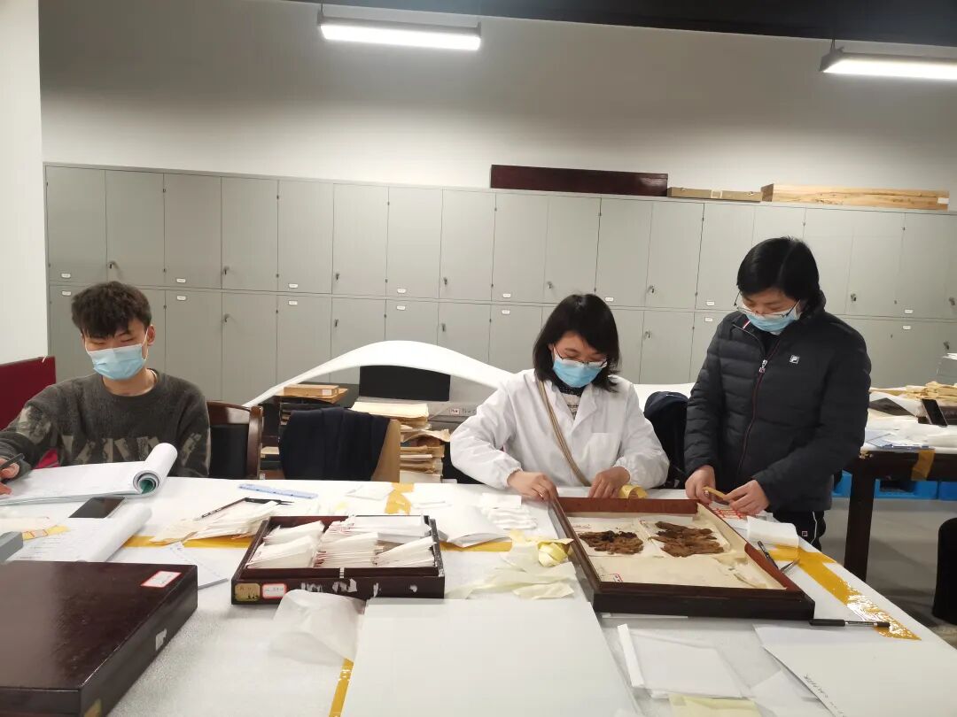 喻燕姣(右)正在指导工作人员对马王堆汉墓出土的文物进行清库建档。湖南省博物馆供图长期从事古代纺织品文物保护修复与研究的湖南省博物馆副研究馆员董鲜艳说,由于早前出土的丝织品数量大,破碎成块的残片以及大堆纺织品粘连堆积成的“丝砖”等都未定级入账,仅作为资料文物保存入库。此次清库,专家将有信息量、有一定特色和意义的残片都进行了归档。“清库是为了更好地保护和保管文物。”湖南省博物馆马王堆汉墓及藏品研究展示中心主任喻燕姣说,清库时在菱纹绮残片里发现了文字。“这是首次发现马王堆汉墓出土的菱纹绮里有织入的文字,是典型的篆隶,体现了汉初高超的纺织品织造技艺。”