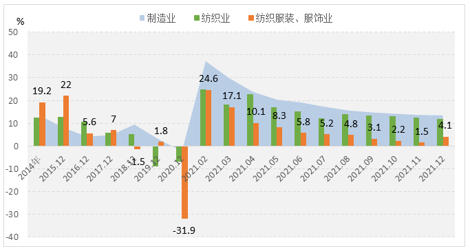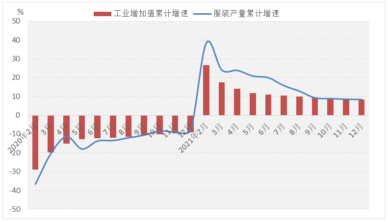 图1 2021年服装行业生产增速情况