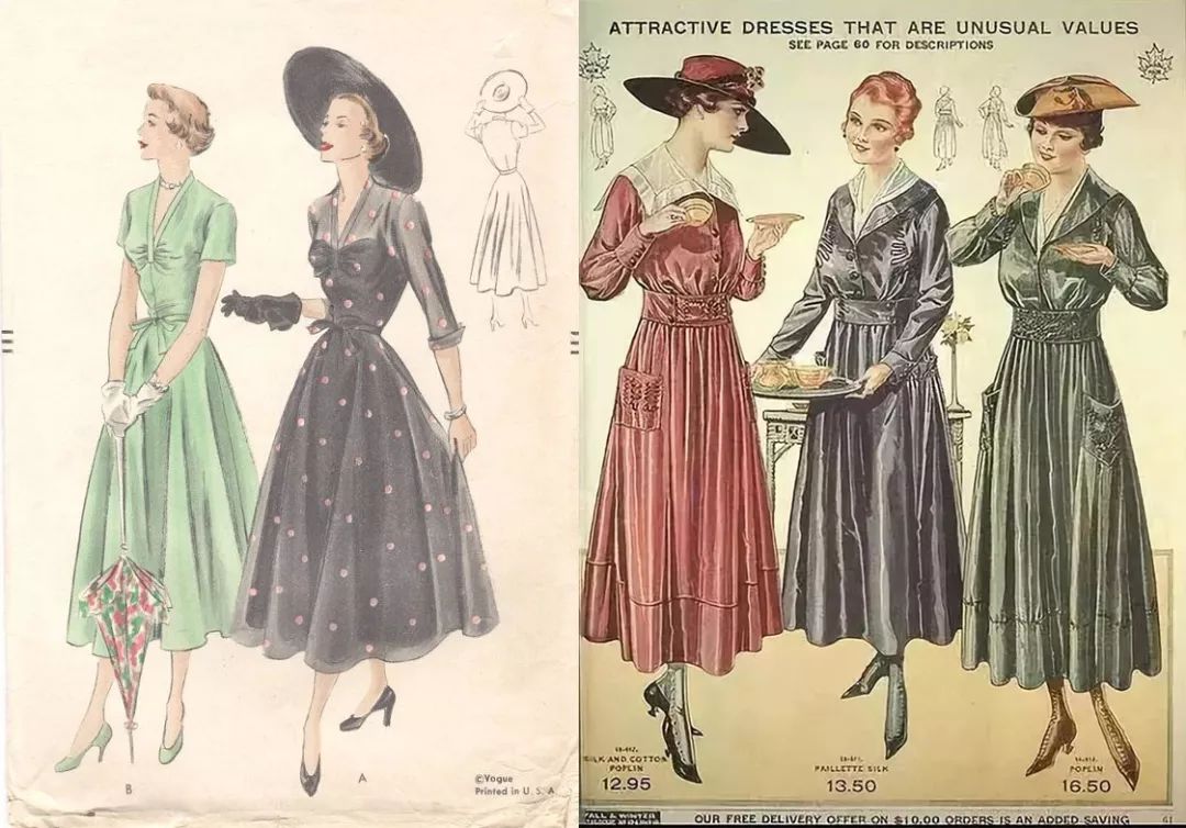 茶歇裙的特点是A字型、收腰、V领、开衩,腰腹间还有长长的排扣。