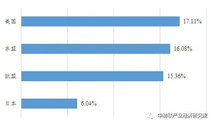 从出口重点市场来看,美国、东盟、欧盟和日本市场占我国纺织品服装出口市场的前四位,对这四大市场的纺织品服装出口额占同期我国对全球出口总额的54.6%。