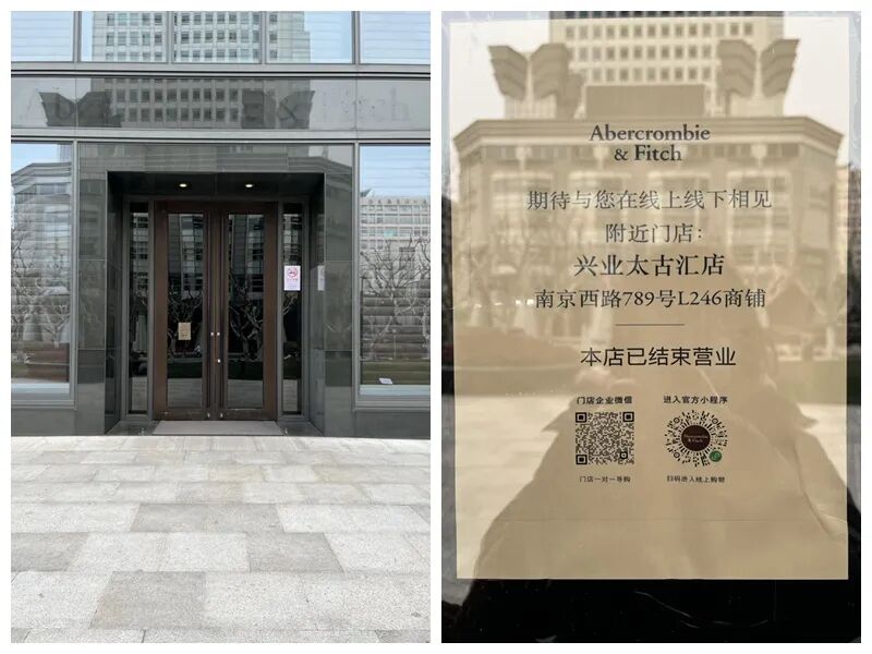2014年4月19日,美国休闲服饰品牌阿贝克隆比&费奇(Abercrombie & Fitch,下称“A&F”)中国首店落地上海静安嘉里中心。就在开业八周年前两个月,该门店宣布停业,A&F给出的原因是租约调整。停业次日,静安嘉里中心外墙上的A&F招牌已不见踪影,门口张贴的告示提示着兴业太古汇店的地址,这也是上海仅剩的一家门店。