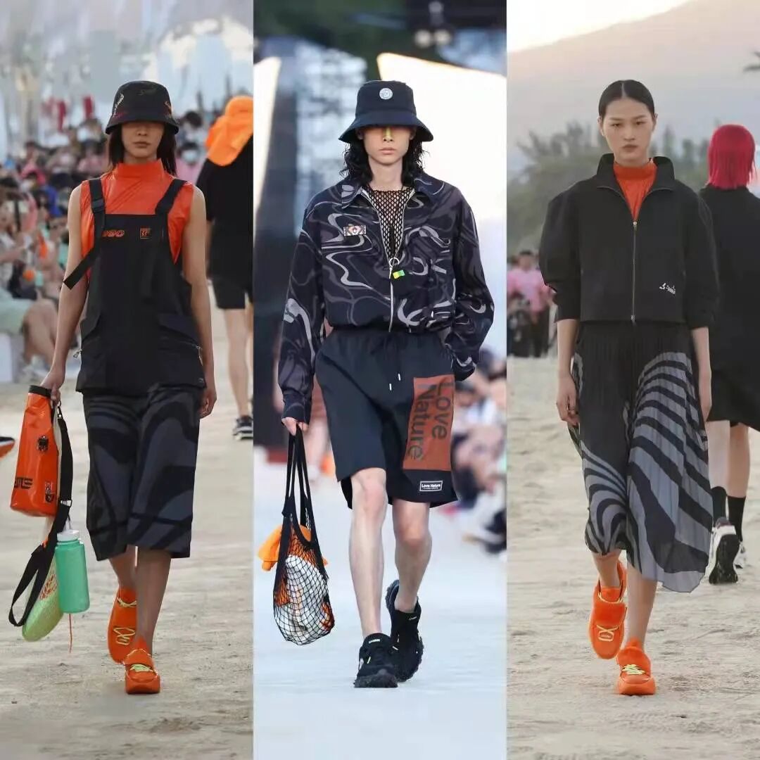 冬日海滩,运动、潮流、中国元素催生制造灵感,阳光、音浪、多巴胺加速化学反应,中国李宁打造了一场以“意想天开”为主题的潮流音乐节,以青年文化力量,创意呈现22春夏系列新品,“海南岛春季国际艺术展”也伴随着潮流音乐节的登陆正式拉开帷幕。本季中国李宁22春夏系列,继续探索运动基因、中国文化和潮流元素三者融合的更多可能,通过对突破精神的探寻及运用,对苗族原生态文化的感悟,对起源于中国的折纸艺术与服饰创作的破壁尝试,开启“意想天开”的奇妙之旅。中国李宁意想天开潮流音乐节,将22春夏系列潮流发布、装置艺术、前卫音乐、极限运动和青年文化元素融会贯通,带来一场高浓度海岛狂欢。沙滩上延伸150米的“镜界”艺术装置,融合摩托车、滑板、折纸、游戏等时下青年潮流元素,在光影反射作用下营造出独立体验空间。此次潮流音乐节,以李宁运动潮流产品全球代言人肖战的创意视频拉开序幕,在李宁签约音乐艺人朱婧汐、唱作音乐人满舒克、知名摇滚乐队大波浪乐队的现场LIVE音乐中,身着中国李宁22春夏系列服饰的模特在黄昏落日下的沙滩上聚光而来,共创了一个青年文化的沉浸式理想国。特邀嘉宾成龙先生、李宁女子运动风尚大使钟楚曦的亮相再次掀起活动高潮,蒸腾热浪,点燃派对。李宁品牌创始人李宁先生,李宁执行董事兼联席行政总裁钱炜先生携高管团队亲临现场并与到场嘉宾共同参与了一场有关青年文化的创造体验。以突破极限为灵感样本,在充满挑战的极限运动中感悟突破自我的生活方式,在传承千年的中国艺术文化中对话与创新,在兼具艺术审美和空间几何原理的折纸艺术中探寻匠心。在“意想天开”主题引导下,本季中国李宁22春夏系列服装产品视线更加聚焦攀岩、激流、越野摩托等极限运动,探索风格、图案和廓形的自由表达,同时借助科技面料的运用,将实用性与潮流紧密结合,带来风格鲜明的呈现。同时基于设计师对苗族生活方式的观察、记录与思考,将千年来为湘西苗族山民所崇尚的、追溯本源的天性艺术成为新的设计理念运用到本季服装中,拉近人与自然距离的同时,进一步展现中国文化于运动潮流中的运用。那些代表苗族天性生活方式的图腾符号、苗族传统刺绣的配色、民族服饰纹路,皆成为设计灵感的催化剂;从苗村墙壁发现的斑驳,结合晕染工艺,带来新的扎染风潮;源自于苗族传统刺绣中的蝴蝶、荷花、狗牙纹饰等自然元素,以折纸艺术中的折痕呈现方式,构成具有辨识度的图案表达。所谓“匠心如纸,不剪不切”,将折纸概念的注入服装设计,也是设计师以实验性的方式为运动潮流寻找新的表达。