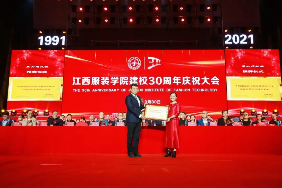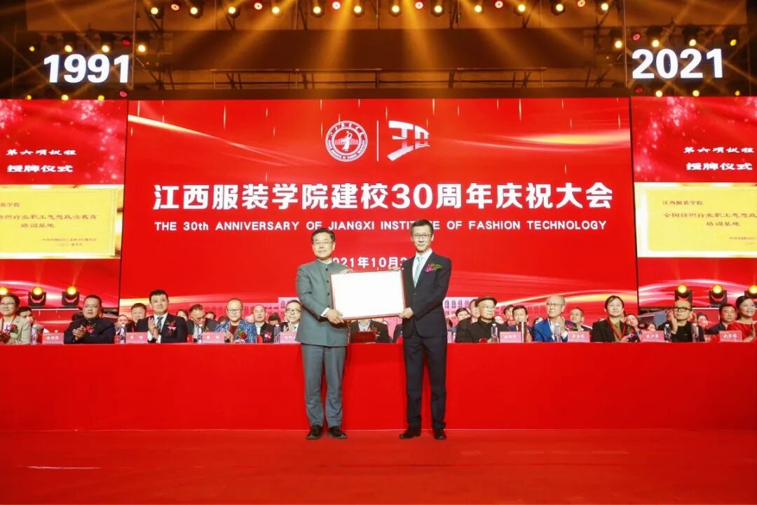 会上,中国纺织工业联合会、中国服装协会还分别授予江西服装学院“全国纺织行业职工思想政治教育培训基地”、“中国服装协会职业装研究中心江西服装学院研究基地”牌匾。最后,一曲《书写华章 织就辉煌》的江服校歌响彻会堂,唱出江服的精神,唱响学校的未来。