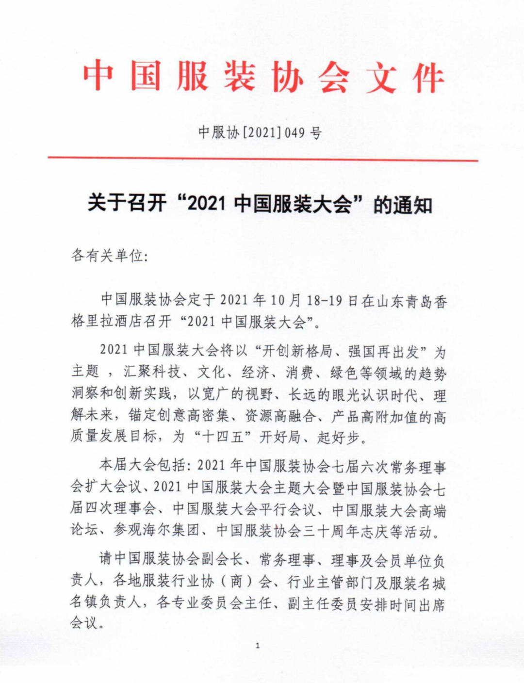 点击蓝字关注我们关于召开“2021中国服装大会”的通知中服协[2021]049号...