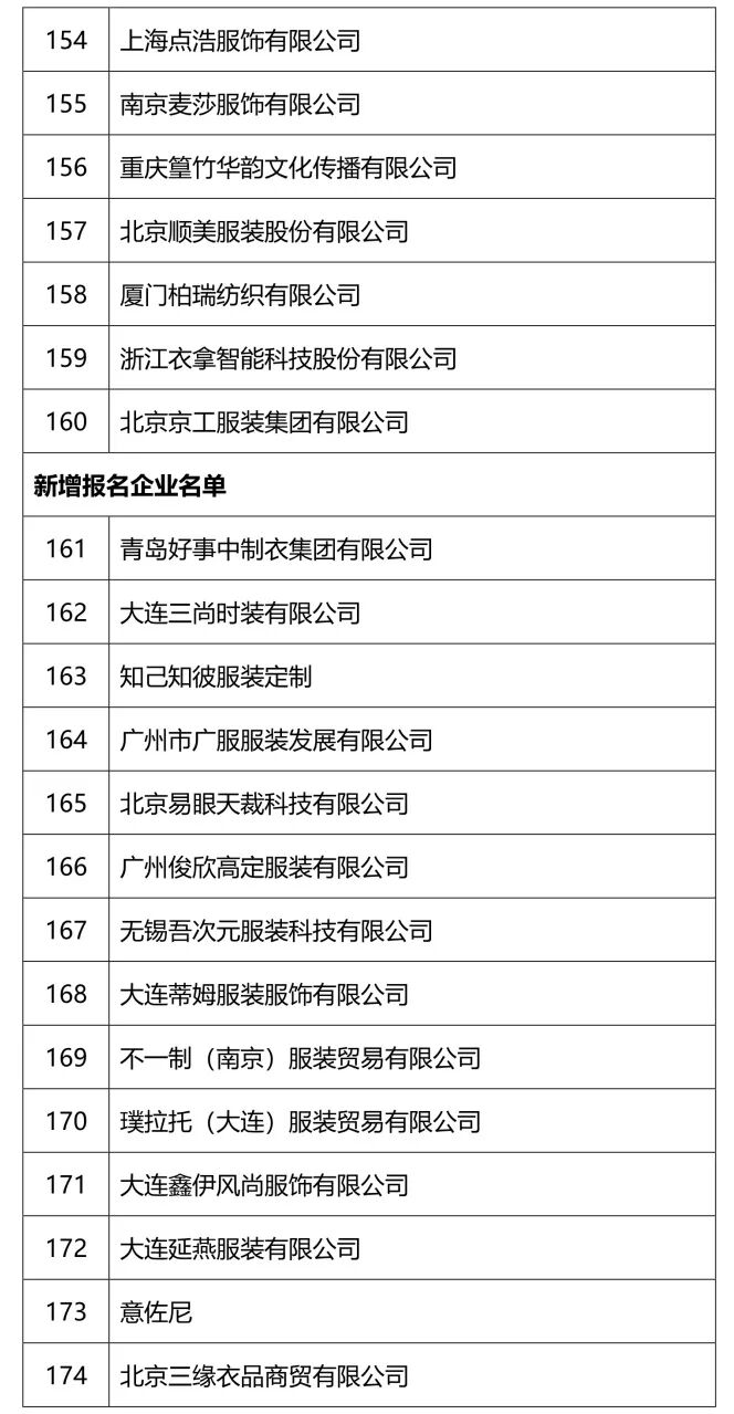 从六月下旬开始中国服装协会官方微信公众号已陆续公布三批 “9.9定制周”报名企业名单。截至目前,共有184家从事服装定制相关企业和个体定制店报名参与,以下是目前报名参与企业名单(排名不分先后):