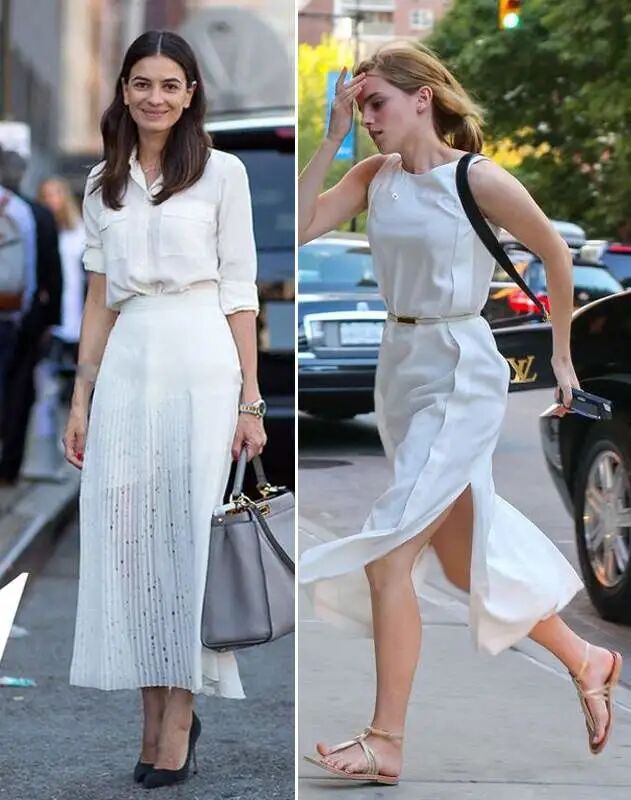 纯净的白色最适合亚洲人肤色,不挑人,显气质,让人看上去更精神。一袭白裙,可以化解夏日的一切烦躁与闷热,让你整个人都变得神清气爽,轻盈又灵动。上班族可以选择工装风的白色衬衫搭配百褶半裙,将衬衫下摆束起来,强调出曼妙的腰线,打造简约知性又不失温柔女人味的轻熟风穿搭。白色的one-piece连衣裙,最好加一条金属扣的细腰带来强调腰线,简单的时髦小心机,能让你的白裙造型更精致更有高级感。▼