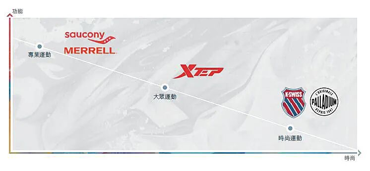 然而,两个品牌完善了特步的多品牌矩阵:特步主品牌为大众市场提供极高性价比的潮流时尚体育用品,索康尼和迈乐提供高质量的专业运动体育用品,盖世威和帕拉丁的定位,则是为注重个性的年轻一代推出时尚运动产品。