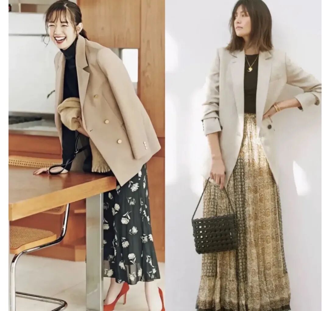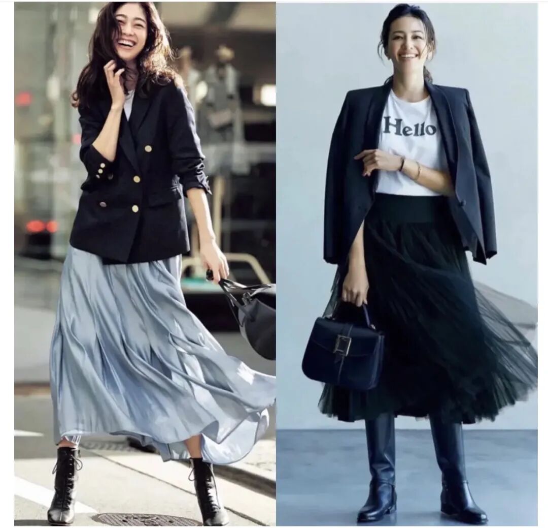 无论是什么季节,办公室OL们是离不开西装的穿搭的,是工作的需要,也是职场穿搭的形象需要!西装外套,难免会有正式感和沉闷感,特别是夏季,还会有闷热感,那么用清爽舒适的半身裙搭配就最合适不过了,轻盈的裙摆可以化解西装的沉闷,带来女性该有的温柔!